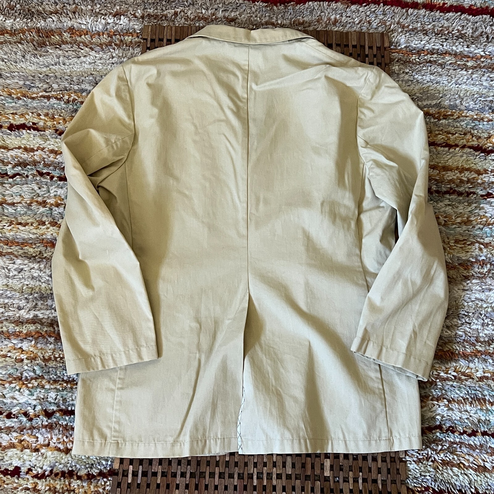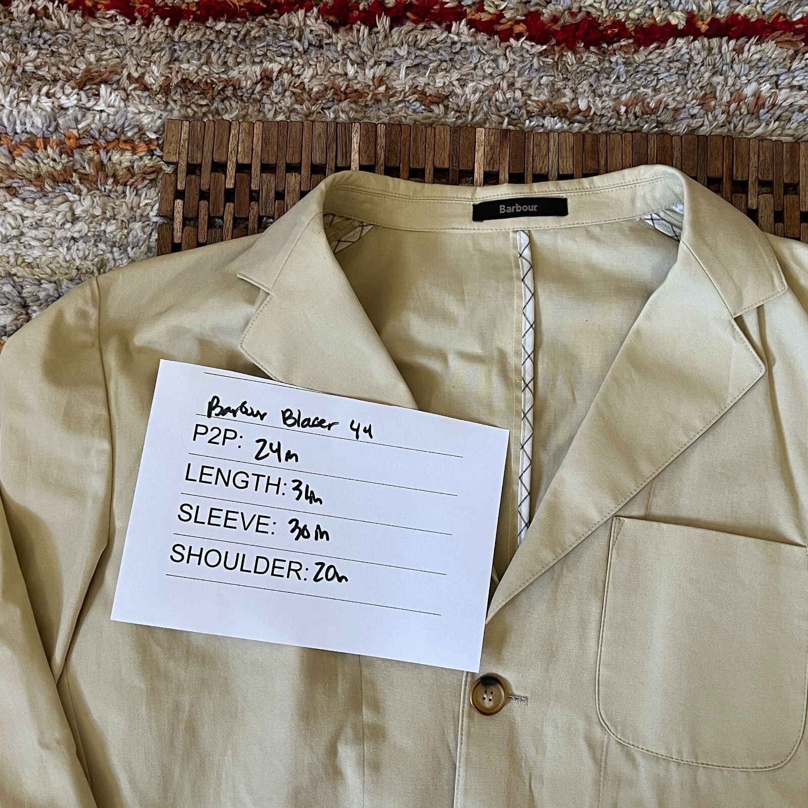 Crafted for the discerning gentleman, the Barbour Khaki Canvas Blazer Jacket offers a seamless blend of durability and comfort. In a versatile beige hue, this military-style jacket is tailored to a regular fit, ensuring ample room for ease of movement while maintaining a sharp silhouette. The lightweight knit fabric makes it an ideal choice for outdoor pursuits such as walking, hiking, or hunting, easily layered over other garments as the temperature drops. The blazer features a classic button-down collar and a convenient button closure, lending a timeless appeal to the design. Its functional charm is further accentuated by its practicality for casual occasions without compromising on style. With a size large available, this piece is a quintessential addition to any well-curated wardrobe, embodying the essence of classic fashion with a touch of modern ease.