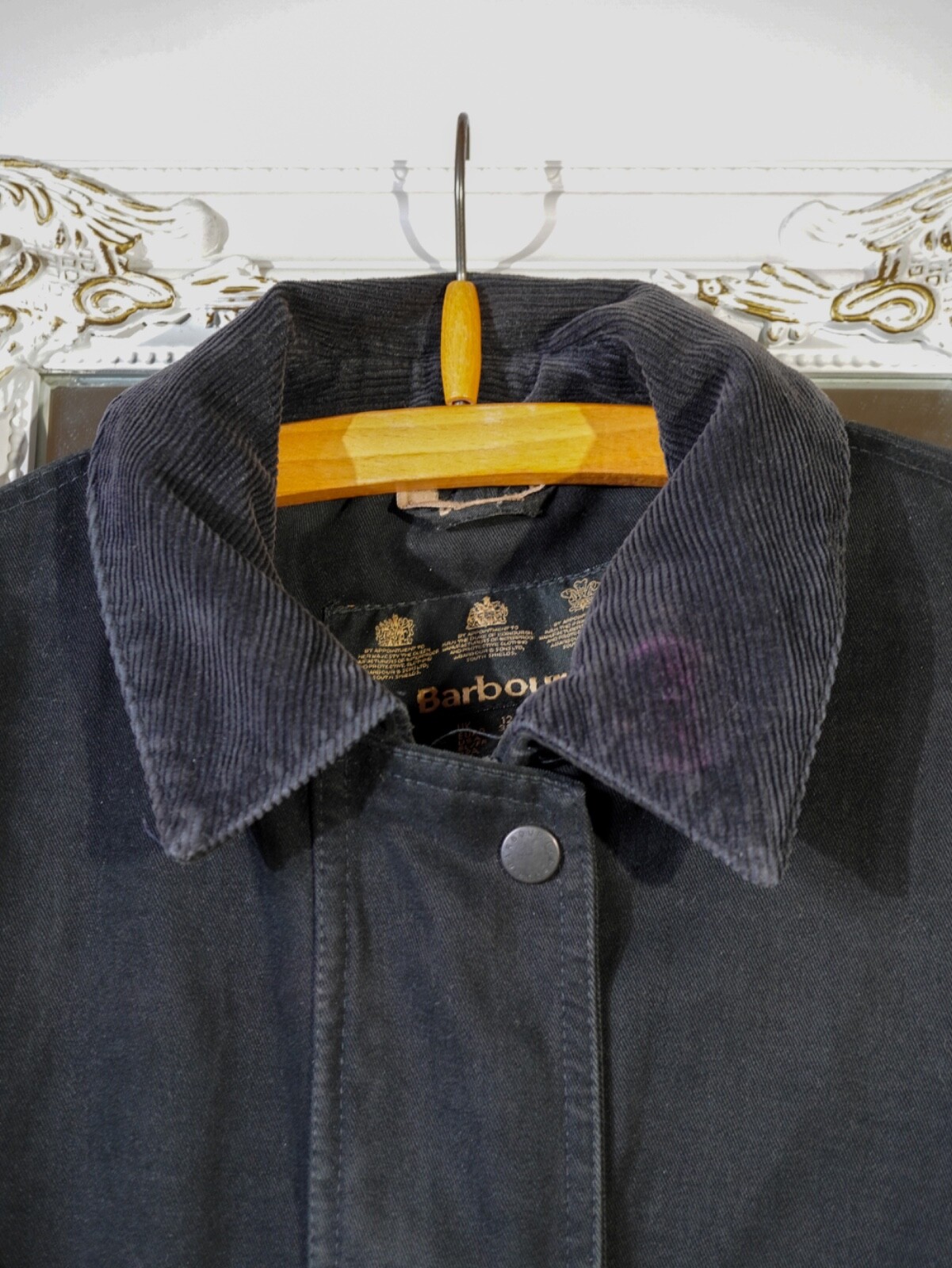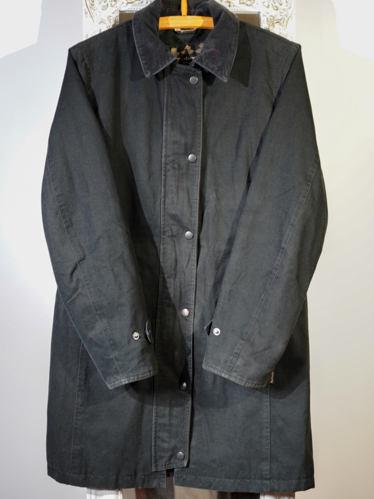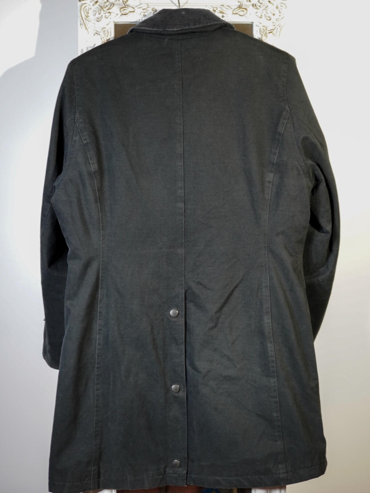 use measurements as a guide: half bust: 52 cm; length: 78 cm; d shoulder to shoulder: 40; sleeve from shoulder: 62 cm. Waterproof & breathable Outer: 100 % cotton Inner: 42 % polyamide/ 38% polyester/ 20% cotton Liner: 50% polyester/ 50% polyurethane Filling: 100% polyester