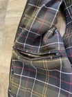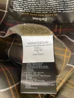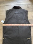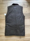 The Barbour Vest for Men in size S in Brown Westmorland Waxed Jacket is a versatile and practical piece perfect for outdoor activities such as hunting, walking, and hiking. Made from durable cotton canvas with a polyester insulation, this vest offers warmth and protection in all seasons. The stand-up collar, full zip closure, and multiple pockets make it suitable for travel, casual wear, and workwear. Machine washable and water resistant, this stylish military-style vest from the renowned brand Barbour is a must-have for any outdoor enthusiast. Barbour Westmorland Waxed Utility Vest Style: Full double zip utility vest Color: Brown Features: Exterior and interior pockets, corduroy collar, waxed fabric, hand warmer and cargo pockets on exterior, tartan lining Fabric: 100% Waxed cotton shell with 100% cotton lining, poly fill Approximate flat measurements: Pit to pit 19", Length back neck to hem 28" Condition: New with tags Tag Size: Small