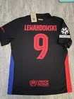 Show your support for FC Barcelona with this beautiful 24/25 Away jersey. Made with high quality materials, this jersey is perfect for any soccer fan. It features the team's iconic colors and logo, as well as your favorite player's ‘Lewandowski 9’ name and number. The jersey is available in size XLarge and is perfect for anyone who wants to show their love for the team. Whether you're watching the game at home or cheering on the team at the stadium, this jersey is a must-have for any true fan. This is a REPLICA jersey. Replica does NOT mean FAKE. A replica jersey is a fan-friendly, officially licensed jersey that is inspired by the jerseys worn by professional athletes. Replica jerseys are designed for comfort and everyday wear