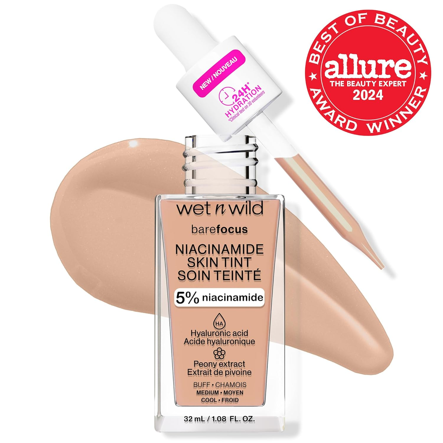 Bare Focus Skin Tint, 5% Niacinamide Enriched, Buildable Sheer Lightweight Coverage, Natural Radiant Finish, Hyaluronic & Vitamin Hydration Boost, Cruelty-Free & Vegan - Buff Sheer Buildable Coverage: Start with a sheer layer and build your way up to the coverage level you need. Natural Finish: Enjoy a gorgeous healthy-looking glow that enhances your natural radiance. Luxurious Ingredients: This skin tint foundation is infused with 5% niacinamide, hyaluronic acid, peony extract, and vitamin E. Lightweight Foundation: Achieve a flawless finish without the extra weight. With this lightweight skin tint, it'll feel like you're wearing nothing at all. Cruelty-Free: wet n wild makeup products are never tested on animals and are always cruelty-free. Achieve a healthy glow in an instant with the help of this lightweight skin tint foundation infused with niacinamide, a known brightening ingredient. Buildable from sheer, this foundation is easy to wear under any makeup and is enriched with a luxurious blend of niacinamide, hyaluronic acid, peony extract, and vitamin E. wet n wild starts as everyone’s first and remains a lifelong destination for vibrant and accessible beauty. Delivering over 40 years of trend-forward and all-inclusive innovations, we are your trusted beauty expert that will keep you looking fabulous without ever betraying your budget. From the bold ‘n’ bright to the neutral ‘n’ nuanced, we set out to spoil you with options while setting the gold standard of achievability. So go ahead, get your feet wet with us again and go wild with your imagination! Dimensions 3.94 inches x 5.67 inches x 1.5 inches. Weight: 4.23 oz Specifications Color Buff Item Form Liquid Country of Origin Mexico Recommended Uses For Product function(f) {var _np=(window.P._namespace("DetailPageProductOverviewTemplatesJava"));if(_np.guardFatal){_np.guardFatal(f)(_np);}else{f(_np);}}(function(P) { P.when('A').execute(function(A){ A.on('a:truncate:po-attribute-truncate-4:updated', function(data) { var isTruncated = !data.truncateInstance.getIfTextFits(); var seeMoreElement = document.getElementById('po-attribute-see-more-id-4'); if(seeMoreElement) { seeMoreElement.style.display = isTruncated ? '' : 'none'; } }) }); })); Apply product to face, then blend with a brush or makeup sponge. Build and layer to desired coverage. See more Skin Type All Finish Type Natural Package Dimensions 5.67 x 3.94 x 1.5 inches; 4.23 ounces Size 1 Count (Pack of 1) Shipping: Shipped from the USA. Fast delivery within 2–3 days. Payment: PayPal, credit card, bank transfer. Returns: 30-day free return – we cover the shipping cost. Quality: Made in Europe/USA/China. No customs fees. VAT invoice on request. Feedback: You’ll automatically receive positive feedback after payment.