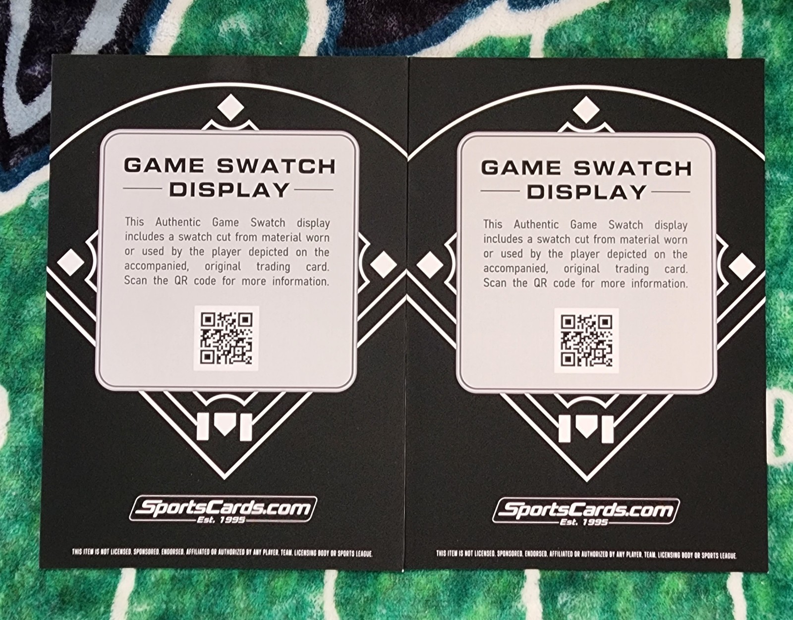 Delve into the world of sports memorabilia with this exclusive set featuring Barry Bonds and David Ortiz Super Swatch Game Used Jersey Displays. These original cards from SPORTSCARDS.COM showcase authentic pieces of the players' jerseys, making them a coveted item for any baseball enthusiast or collector. Each card is a testament to the stars' Major League Baseball careers, and while they are not autographed, the mere fact that they contain a piece of the legendary players' uniforms is enough to make them a standout addition to any collection. These cards are a tangible piece of baseball history that celebrate the achievements of Bonds and Ortiz.