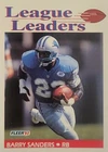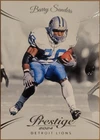 This product features various NFL trading cards of Barry Sanders from the Detroit Lions. The cards are made of card stock and come from different sets and manufacturers. They include base, rookie, and insert cards, in English language and standard size. The cards may have various parallels and are related to football. Free shipping is available for this collection of sports trading cards.