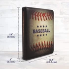 900 Pocket Card Binder for Baseball Cards: Organize your trading card collection with ease using this 9 pocket card binder. It features 50 pages of card binder sleeves on each side, providing enough space to store up to 900 cards. This baseball card binder comes with durable 9 card sleeves for binders, allowing collectors to store their sports cards with maximum protection. The card binder zipper ensures that your cards stay safe from dust, dirt, and moisture. It allows for amazing baseball card display and storage. Unique and Recognizable Vintage Design: This baseball card binder stands out with its vintage baseball design on the front and back, featuring a classic baseball bat along the spine for easy identification. Equipped with a ring release metal tab, this sports card binder allows you to conveniently add, remove, or reorder pages. Whether you are storing football cards, basketball cards, or soccer cards, this binder for cards offers optimal storage for any sports enthusiast, ensuring cards safety. Built for Longevity with Water-Resistant PU Leather: Made from premium, water-resistant PU leather, this baseball zipper binder is built to last. The durable material ensures long-term protection for your trading cards, making it perfect for any card collection. With a convenient wrist strap, you can carry your trading card binder anywhere. The card binder with 9 pockets can hold upto 900 cards making it ideal for those who need an organizer for baseball card collections or even football cards binders. Versatile Storage for All Sports Cards: This sports card binder with sleeves is not just limited to baseball cards. It’s a perfect organizer for any standard-size collectible cards, including football, soccer, basketball, and hockey cards. Whether you're looking for a football card binder, graded card binder, or a mini card binder, this product caters to all needs, offering excellent protection and organization for your entire collection of sports trading cards. An Ideal Gift for Baseball Enthusiasts: This vintage card binder is the perfect gift for any baseball lover. Designed for boys aged 8-12 or even adult collectors, it offers great value for any trading card fan. The 900-pocket baseball card binder has everything needed to keep a collection safe and stylish. Whether it's football card binders or baseball card binders, this trading card binder zipper is a must-have for any sports card enthusiast, making it an exceptional choice for gift. A great gift for men as well. Product Description THE PERFECT BASEBALL CARD BINDER! Here at HourLine Collectors Gear, we care a lot about our sports memorabilia and we offer a product that offers a secure storage solution while being aesthetically pleasing and easy to use. Baseball cards are essentially a snapshot of baseball history, and what better way to store those cards than in a binder that captures the essence of this historic game. BASEBALL CARDS BINDER FEATURES 900 Card Capacity Includes 50 double-sided pages to allow up to 900 baseball trading cards to be stored. Antique Aesthetic Nostalgic cover graphic with the spine featuring an old wooden bat for quick recognition on a shelf. Convenient Release Tabs Ring-release tabs make it easy to open and close the binder rings for page reorganization or addition. SPORTS CARD BINDER ESSENTIALS Includes 50 transparent, double-sided pages. Fill all 900 pockets or keep a side open to view both sides of a special card. The binder cover is made with PU leather which is both durable and water-resistant. Our card collection binder includes a wrist strap to offer an extra measure of secure handling. Standard 3-ring trading cards binder dimensions.