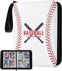 PU Leather Imported Accommodates standard 2.5"x3.5" collection cards. Transparent card pages for easy display, sorting, and organization. Robust 3-ring binder with metal spine ensures durability. Smooth zippers are dustproof and water-resistant, securing cards in place. Crystal-clear display with acid-free, non-toxic, high-definition PP material for card sleeves. Spacious capacity with 55 card sleeves, each holding 8 baseball cards. Double-sided loading can store up to 440 cards. Ideal gift for card collectors. Features a high-quality PU leather cover with a baseball-themed pattern for added aesthetics. Product Description