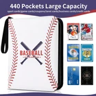 PU Leather Imported Accommodates standard 2.5"x3.5" collection cards. Transparent card pages for easy display, sorting, and organization. Robust 3-ring binder with metal spine ensures durability. Smooth zippers are dustproof and water-resistant, securing cards in place. Crystal-clear display with acid-free, non-toxic, high-definition PP material for card sleeves. Spacious capacity with 55 card sleeves, each holding 8 baseball cards. Double-sided loading can store up to 440 cards. Ideal gift for card collectors. Features a high-quality PU leather cover with a baseball-themed pattern for added aesthetics. Product Description