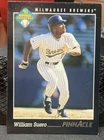 This baseball trading card singles pick features cards from top brands like Pinnacle, Score, Fleer, Upper Deck, and Baseball. The cards are from the Major League (MLB) and are in standard size. These sports trading cards are in English language and made in the United States. The cards are not autographed and are vintage. Perfect for collectors, this mix of cards would make a great addition to any sports memorabilia collection. Get your hands on these cards from the top brands without worrying about quality. ***Noteable Visible*** * Joe Sambito #314 of 660 is creased from left to right side above players head. * Doug Sisk #264 Some Stains on back - front near glove and above throwing arm appears scratched * Daryl Irvine #726 - very small crease from top of card near head *Jason Bere #1 of 10 / #383 Sam Militello - The back has white spotting, looks like it was a manufacturing error to me * Roberto Alomar #35 - Next to head and shoulder of player peeling