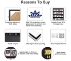 Baseball Card Display Case 24 Graded Sport Card Display Case Wall Mount with Clear View and UV Protection Acrylic Door for Baseball Football Basketball Hockey Trading Card Collection, Black Color Black Brand Grintus Product Dimensions 28.8"L x 2.1"W x 19"H Frame Material Wood Mounting Type Wall Mount About this item Sports Card Display Case: The perfect way to display the memorable cards that you have collected. This sport card display case can display up to a total of 24 cards. Perfect fits for most graded cards, such as baseball, basketball, hockey, football, and trading cards, or any other cards that are no more than 5.5” tall. (NOTE: Cards are not included.) Sturdy and Durable SHOWCASE FOR SPORT CARDS - baseball card display case is made of sturdy wood. Nice edge on the inside to keep the cards from falling. Outside Dimensions: 28.8"L*19"H*2.1"W. Inside Depth: 1.2". Space Between Shelves: 5.5". CLASSIC DESIGN - Wooden card display case,2 gold plated anti-theft locks,velvet like felt lining, Shatter Proof 92% transparency and 98% UV protection acrylic door to protect your items from yellowing. EXQUISITE GIFTS - baseball card display case for cards display can display our beloved graded cards. At the same time, it is also an exquisite gift for family, children, friends, classmates, colleagues, club fans and sports fans who love collection cards. STRONG PACKAGING - The graded card display case is surrounded 360 degree by foam to get it fully protected. The acrylic panel is covered with thick protective stickering to prevent scratching during the shipment. . We offer FREE shipping on all orders! . We ship within Five business days of payment, usually sooner. . We use a selection of shipping services such as UPS, FedEx, USPS etc. . We only ship to the lower 48 states, no APO/FPO addresses or PO Boxes allowed. . Local pickups and combined shipping options are not provided at this time. . Your satisfaction is a wonderful reward for our efforts. Please assist us by leaving a positive review if you feel pleased with our service. . In the event that you encounter any difficulties related to your order, please do not hesitate to reach out to us directly through the Messaging system on the Ebay platform. Kindly consider opening a COMPLAINT or a RETURN REQUEST as a last resort, only after all other possible measures have been attempted and we have been unable to provide you with assistance. . We will get in touch with you within 24 hours and make every effort to ensure your satisfaction. . Please rest assured of our service quality.