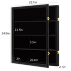 Sports Card Display Case: The perfect way to display the memorable cards that you have collected. This sport card display case can display up to a total of 24 cards. Perfect fits for most graded cards, such as baseball, basketball, hockey, football, and trading cards, or any other cards that are no more than 5.5” tall. (NOTE: Cards are not included.) Sturdy and Durable SHOWCASE FOR SPORT CARDS - baseball card display case is made of sturdy wood. Nice edge on the inside to keep the cards from falling. Outside Dimensions: 22.1"H*24.8"L*2.1"W. Inside Depth: 1.2". Space Between Shelves: 5.5". CLASSIC DESIGN - Wooden card display case,2 gold plated anti-theft locks,velvet like felt lining, Shatter Proof 92% transparency and 98% UV protection acrylic door to protect your items from yellowing. EXQUISITE GIFTS - baseball card display case for cards display can display our beloved graded cards. At the same time, it is also an exquisite gift for family, children, friends, classmates, colleagues, club fans and sports fans who love collection cards. STRONG PACKAGING - The graded card display case is surrounded 360 degree by foam to get it fully protected. The acrylic panel is covered with thick protective stickering to prevent scratching during the shipment.