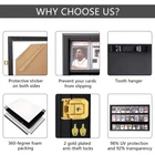 Sports Card Display Case: The perfect way to display the memorable cards that you have collected. This sport card display case can display up to a total of 24 cards. Perfect fits for most graded cards, such as baseball, basketball, hockey, football, and trading cards, or any other cards that are no more than 5.5” tall. (NOTE: Cards are not included.) Sturdy and Durable SHOWCASE FOR SPORT CARDS - baseball card display case is made of sturdy wood. Nice edge on the inside to keep the cards from falling. Outside Dimensions: 28.8"L*19"H*2.1"W. Inside Depth: 1.2". Space Between Shelves: 5.5". CLASSIC DESIGN - Wooden card display case,2 gold plated anti-theft locks,velvet like felt lining, Shatter Proof 92% transparency and 98% UV protection acrylic door to protect your items from yellowing. EXQUISITE GIFTS - baseball card display case for cards display can display our beloved graded cards. At the same time, it is also an exquisite gift for family, children, friends, classmates, colleagues, club fans and sports fans who love collection cards. STRONG PACKAGING - The graded card display case is surrounded 360 degree by foam to get it fully protected. The acrylic panel is covered with thick protective stickering to prevent scratching during the shipment.