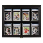 1. The card display box has a black matted and fade-resistant lacquer finish, shatter-resistant ultra-clear 96% transparency and 98% UV-resistant acrylic glass to ensure that your card collection will not fade under natural light and appears vividly. 2. The sports card display cabinet can be displayed in 2 ways. You can hang this vertically with 2 shelve/3 rows total, to hold 12 ungraded baseball football or basketball trading cards in hard sleeves or bare. Or, you can display this horizontally to hold 8 PSA or BGS graded cards with the plastic casing that is no more than 5.6”. Please measurements the cards to make sure before you consider. All shelves are removable detachable to accommodate different display uses. Each partition has a lip to prevent the cards from slipping off. 3. A golden latch lock can seal and store your beloved card to prevent dust and curious hands. 4. There are 2 hooks on the back of the card display frame, which can be hung on the wall to share your favorite cards with family and friends 【GRADED SPORT CARDS DISPLAY】 Sports Card Display Case holds 8 PCS or GBS Graded sports cards of baseball, basketball, hockey, football, Comic, Cartoon, or Game trading cards with no more than 5.5” tall. The frame outer size is 12.6" X 15.2" X 1.6" , Compartment height is 5.5 inch, Interior depth is 1 inch. NOTE: Cards are not included. 【REMOVABLE SHELVES】 - Shelves are removable to accommodate the displaying or graded cards (horizontal) or ungraded sport cards (vertical). The shelves are lipped on edge on to prevent card from sliding off. Cards are gripping at the bottom, with the top touching the back, creating an slight angle for greater presentation. 【PROTECT YOUR CARD】 - baseball card display case is made of Grade A acrylic, with 96% transparency, 98% UV protection. Protect your card from fading over time. This display case offers ULTRA-CLEAR VIEW to your collection. There is an anti-theft locks can protect your cherished sports cards memorabilia or collectibles from lost well. 【FLAUNT YOUR PRIZED SPORT CARDS】- Sports Card Display Case is perfect designed for Sports memorabilia collectors. Cards case can save everything long well from hobby collections to family heirlooms. Proudly display them, instead of have them idled in the drawer or closet. Displaying is a great way to entertain guests to your home. 【SAFE PACKING】 - Well packed with Styrofoam and reinforced box corners to make sure this arrives to you in a safe and timely manner. And if there is any delivery issue you are covered. No assembly required. This comes in one piece.