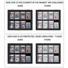 Baseball Card Display CaseThis furniture grade display case cabinet is of beautiful design and construction, very detailed and attractive, but also very affordable.Protect your precious collections from dust, damage and inquisitive fingers with our Scratch Resistant and Anti Theft Gold Lock fitted Acrylic Glass Door. THE 98% UV PROTECTION feature ensures no fading of your collectibles when exposed to natural light. Always get a clear view of your collection inside the Matt Black Finish Lockable cabinet.Cabinet features a 98% UV front Acrylic door and 1 shelves that can. Gives you the flexibility to place Standard size graded sport cards you like.Compartmen lipped edge on shelves to prevent card from sliding. Display case comes with brass hinges, lockable latches(1 set of keys) and installed wall hanging brackets. Black felt fabric background creates a stunning contrast for the Cards you are displaying.The Sports Card Display Case is surrounded 360 degree by foam to get it fully protected. 【GRADED SPORT CARDS DISPLAY】 Sports Card Display Case holds 8 PCS Graded sports star cards of baseball, basketball, hockey,football, and other cards with 5.3 inches height or less. The frame outer size is 12.6" X 15.3" X 2.1" , Compartment height is 5.3 inch, Interior depth is 1.2in. NOTE: Cards are not included. 【REMOVABLE SHELVES】 - Every other shelves in between are removable to accommodate cards in different sizes. Compartmen lipped edge on shelves to prevent card from sliding. This design holds the cards more securely and can withstand your ever-growing collection, also allows your cards to show at a displaying angle. 【PROTECT YOUR CARD】 - baseball card display case is made of Grade A acrylic, with 92% transparency, 98% UV protection. Protect your card do not yellow over time, offering ULTRA-CLEAR VIEW to your sport cards. 1 gold plated anti-theft locks can protect your cherished sports cards memorabilia or collectibles from lost well. 【FLAUNT YOUR PRIZED SPORT CARDS】- Sports Card Display Case is perfect designed for Sports fans. Cards case can save everything long well from hobby collections to family heirlooms.Display them, Get those treasures out of the drawer or closet ,so your family and friends can enjoy memorial. 【SAFE PACKING】 - Surrounded 360 degree by foam to get a full protection for the fragility of the glass card frame display case.Thick protective sticker on acrylic glass panels ensures scratch free when transit to your home.