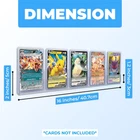 Baseball Card Display Case, Hold Up To 120 Cards, Wall Mount, Sleeved&Toploader EFFICIENT CARD ORGANIZATION - This set includes 20 packs of display shelves, capable of showcasing up to 120 sleeved cards or 100 toploaders, each tab up to 6 sleeved cards or 5 toploaders. Its minimalist design ensures a visually appealing organization. SIMPLE INSTALLATION - No screws needed! With the provided Command strips, installation is a breeze. Mount and position the display anywhere on the wall without hassle. SHOWCASE YOUR PRIZED COLLECTIBLE CARDS - Compatible with various trading game cards. Made from high-clarity PET material, it ensures your cards are showcased in all their glory. EASY CARD ROTATION - Changing displayed cards is a breeze. With its user-friendly design, even children can effortlessly swap out cards to showcase their favorites. SPACE-SAVING - a minimalist, transparent design perfect for organizing card collections on shelves in bedrooms, living rooms, or collector's spaces, optimizing space while seamlessly complementing any decor. VERSATILE GIFT - Ideal for card collectors, including sports cards, trading card games, and baseball cards serves as the perfect gift. Product Description 0.08 "h x 16.0 "h x 2.0 "h. Weight: 0.08 lb Frame Size 16 x 16 inches Item model number 24001-2 Mounting Type Wall Mount Color Transparent Product Dimensions 16"L x 0.08"W x 2"H Country of Origin China Item Weight 0.08 Pounds Shape Rectangular Frame Material Plastic Size 20-Pack