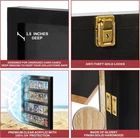 Premium Card Display Case: Our card dispaly is handcrafted from solid hardwood with glossy black finish, holds up to 20 ungraded cards. USA made sports card display case comes with gold-plated anti-theft locks. The ideal card height is 4.5". Classic Design: Pennzoni's sports card display case comes pre-assembled in hardwood frame with crystal clear acrylic door provides ultra-clear viewing, 100% UV protection & dust prevention. It Comes with brass hinges and ready-to-hang hooks. Best Way to Show Off Sport Cards: Showcase your ungraded Pokémon, basketball cards, and more sports cards in our premium waterproof wall display case. Our trading card case is meticulously polished for unmatched smoothness and elegance. Durable Showcase for Cards: Our baseball card display case features a shelf slot for secure storage, solid hardwood, and a crystal-clear acrylic framed door for optimal card visibility and protection. Protectove Packaging: At Pennzoni, we always consider the fragility of our products. We provide safe packaging by placing our trading card display products in multiple boxes during transportation. For concerns & queries, contact us. Product Description Show off your cards in style Keep your cherished baseball cards safe from the harmful effects of sun damage with a high-quality, UV-protected display case. It creates a secure environment for your cards, shielding them from fading, and cracking. Secure Your precious cards Safeguard your valuable trading cards, baseball cards, or any collection you treasure with a premium card display case. Keep your investment secure, whether on display or in storage, with a crystal-clear view. Display in Style: Graded or Ungraded No more size worries! Our attractive and versatile display case is the perfect way to showcase your collection of trading cards, whether they're prized collectibles in protective cases or everyday favorites you love to flip through. Hardwood Case with Customizable Felt Made from real hardwood with a variety of background felts which highlights the beauty of your graded/ungraded cards. Protect and showcase your favorite cards with this elegant wooden display case OVER 20 YEARS IN SERVICE Pennzoni Display Co. has been in business for over 20 years providing premium quality acrylics for drum shields, drum screens, sports display cases, guitar cases, bird cages, and NASCAR diecast cases.