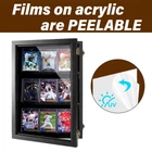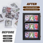Sports Card Display Case : Protect and Organize Your cards in Style! Product Information Superior Material: High-definition clear acrylic cover, waterproof, dustproof and UV resistant, dual groove design holds your cards in place. Suitable size: External dimensions are: 11.1 "H X 16.9 "W X 2.4 "D, suitable for collecting cards or other collectibles. Product Features Stylish Design: Black painted solid wood frame and high definition acrylic tops add texture to your collection. Clear Acrylic Protective Cover: The high-definition clear acrylic cover is waterproof, dustproof and comes with UV protection. Removable Shelves: Each shelf is notched to prevent slipping. You can customize the perfect display for your collections. No Assembly Required: It comes as one piece, ready to display your card collection. Excellent Gift: The timeless and functional design appeals to fathers, brothers, boyfriends, or anyone passionate about their hobby. Choose Sports Cards Display Case and elevate your collection experience. Your collections deserve the best! 【PLEASE NOTE】❗❗❗The acrylic door is covered with peel-off protective film on both sides. Peel it off for transparency display, or leave it on for protection.❗❗❗ 【Perfect Fit】Our Sports Card Display Case holds up to 9 cards, fitting various sports types like baseball, basketball, hockey, and football, or trading cards. Sized at 11.1" W X 16.9" H X 2.4" D, it's ideal for showcasing your collection securely. 【Custom Display】The removable shelves allow for adjusting to different card sizes. They're designed with edges to keep cards in place and display them attractively. 【Top-notch Protection】Made of acrylic with high transparency and UV protection, our case keeps your cards clear and prevents yellowing and dust, ensuring excellent preservation. 【For Sports Fans】Specifically crafted for sports enthusiasts, our case proudly displays your memorabilia, making it easy for friends and family to enjoy the memories with you. 【Easy Wall Mounting】The metal bracket on the back makes it effortless to mount on the wall, serving as both a display and a stylish décor. It arrives fully assembled for your convenience. If you have questions, don't hesitate to contact us.