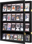 Sports Card Display Case: The perfect way to display the memorable cards that you have collected. This sport card display case can display up to a total of 24 cards. Perfect fits for most graded cards, such as baseball, basketball, hockey, football, and trading cards, or any other cards that are no more than 5.5” tall. (NOTE: Cards are not included.) Sturdy and Durable SHOWCASE FOR SPORT CARDS - baseball card display case is made of sturdy wood. Nice edge on the inside to keep the cards from falling. Outside Dimensions: 22.1"H*24.8"L*2.1"W. Inside Depth: 1.2". Space Between Shelves: 5.5". CLASSIC DESIGN - Wooden card display case,2 gold plated anti-theft locks,velvet like felt lining, Shatter Proof 92% transparency and 98% UV protection acrylic door to protect your items from yellowing. EXQUISITE GIFTS - baseball card display case for cards display can display our beloved graded cards. At the same time, it is also an exquisite gift for family, children, friends, classmates, colleagues, club fans and sports fans who love collection cards. STRONG PACKAGING - The graded card display case is surrounded 360 degree by foam to get it fully protected. The acrylic panel is covered with thick protective stickering to prevent scratching during the shipment. Product Description
