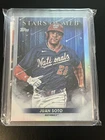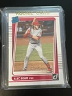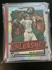 Mystery pack of 40+ baseball cards. These are repacks from a personal collection and geared towards beginning collectors. Cards have been handled with care and packs were compiled with the intent to provide a variety of cards from a variety of sets - primarily Topps and Panini products. Each pack includes three bags of cards and will contain at least one autographed card, relic, or serial numbered card #/499 or lower! Several rookies, parallels, and inserts are in each pack - including today's MLB superstars and some additional serial numbered cards #499 or higher mixed in. Each pack will include two additional top loaded cards featuring an MLB star or star rookie and a mixture of base cards and penny sleeved rookies, stars, parallels, and inserts. There are generally 20+ base cards and 17+ penny sleeved cards in each pack. The vast majority of cards are from the 2020 season through the 2022 season. Please do not hesitate to message with any questions!