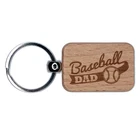 Baseball Dad Banner Engraved Wood Rectangle Keychain Tag Charm
