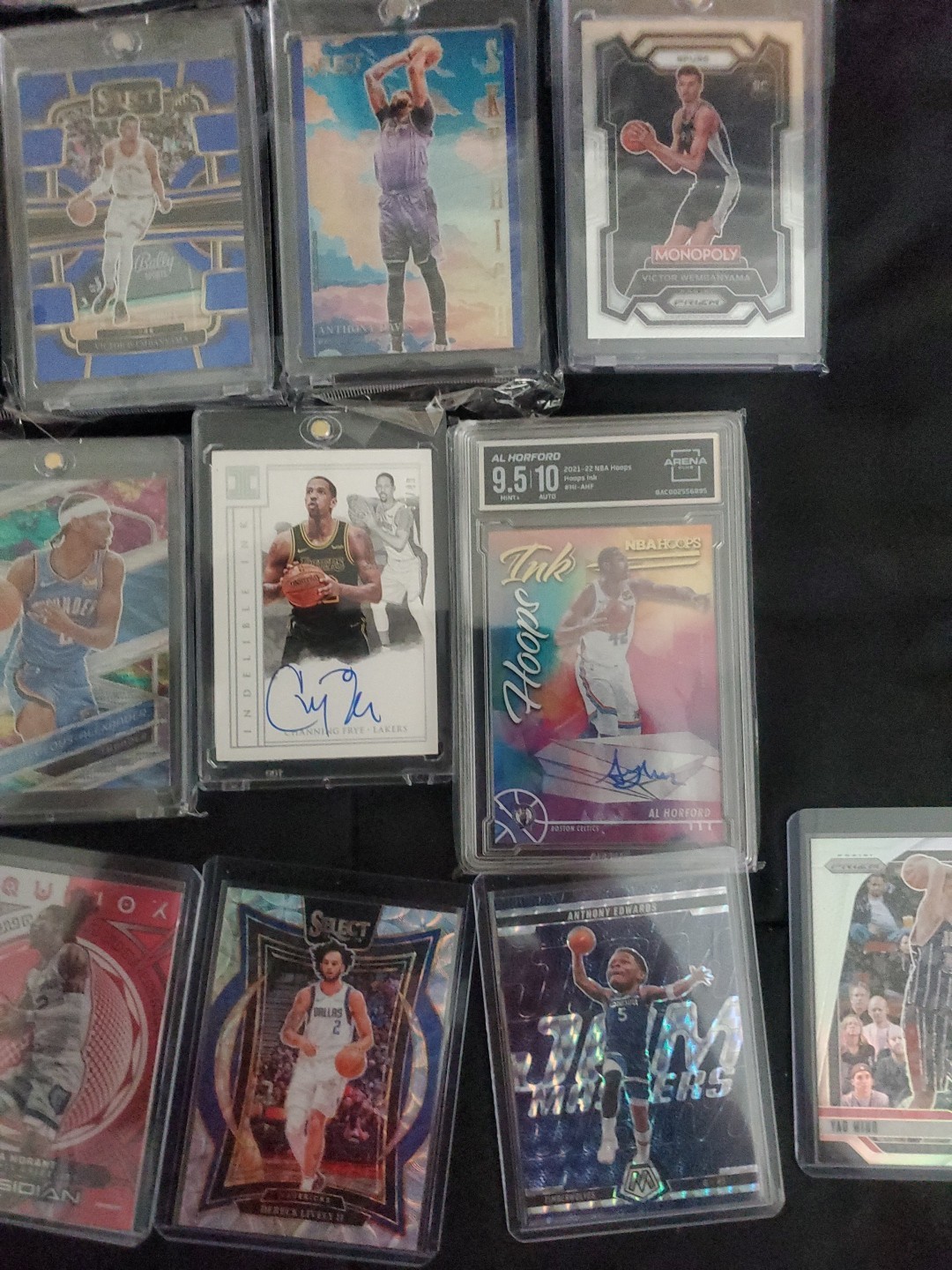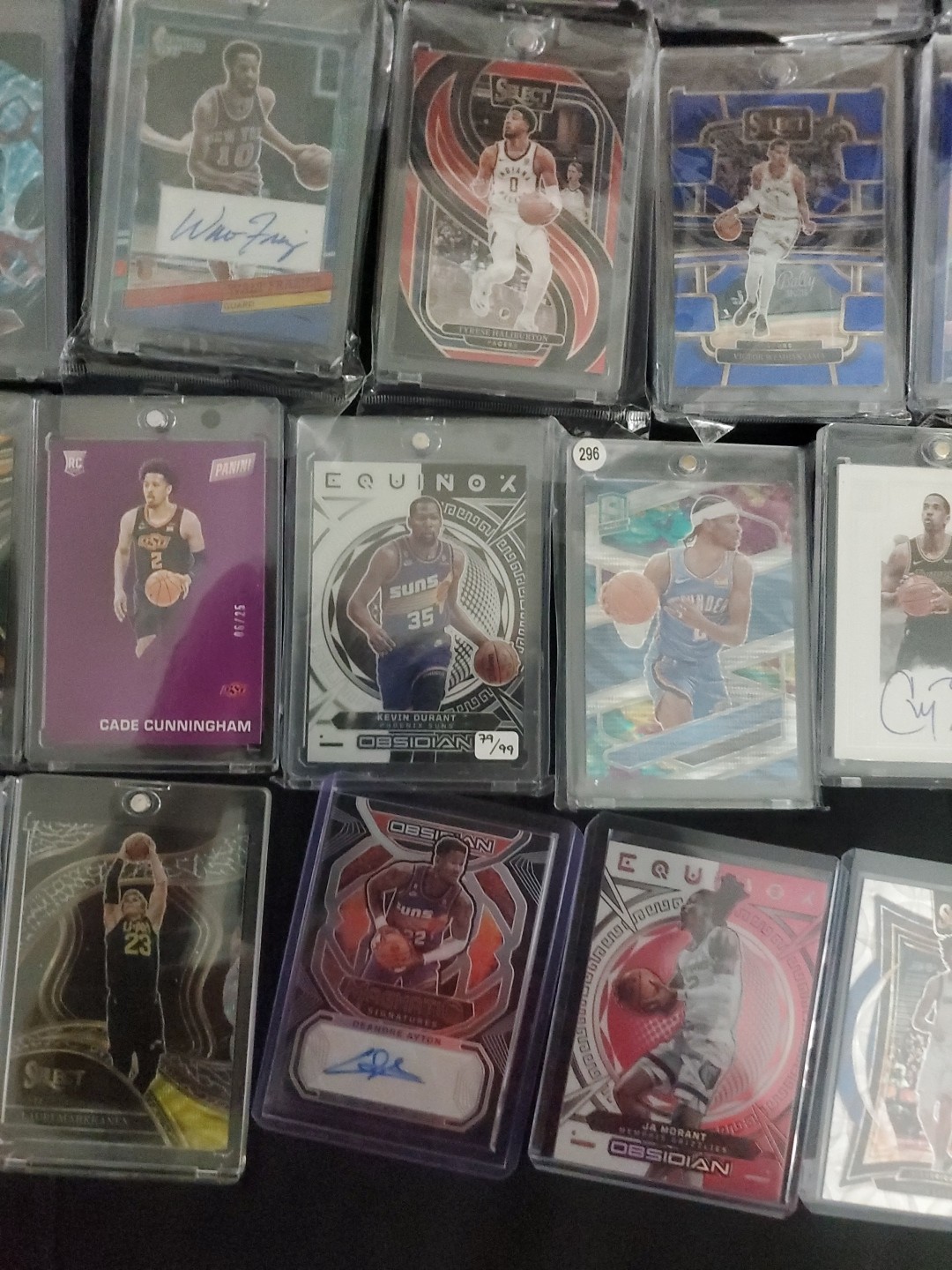 Great lot many numbered you get all in picture only asking for $556 add this collection to yours are start yours also 4 golds This lot of 31 basketball cards features many autographed cards, with some numbered and case hits included. The cards are made of card stock and are original prints licensed by the National Basketball Association (NBA). Each card is authenticated by Panini Authentic and features an autograph label or sticker. The lot also includes rookie cards, making it a valuable addition to any basketball card collection.