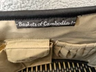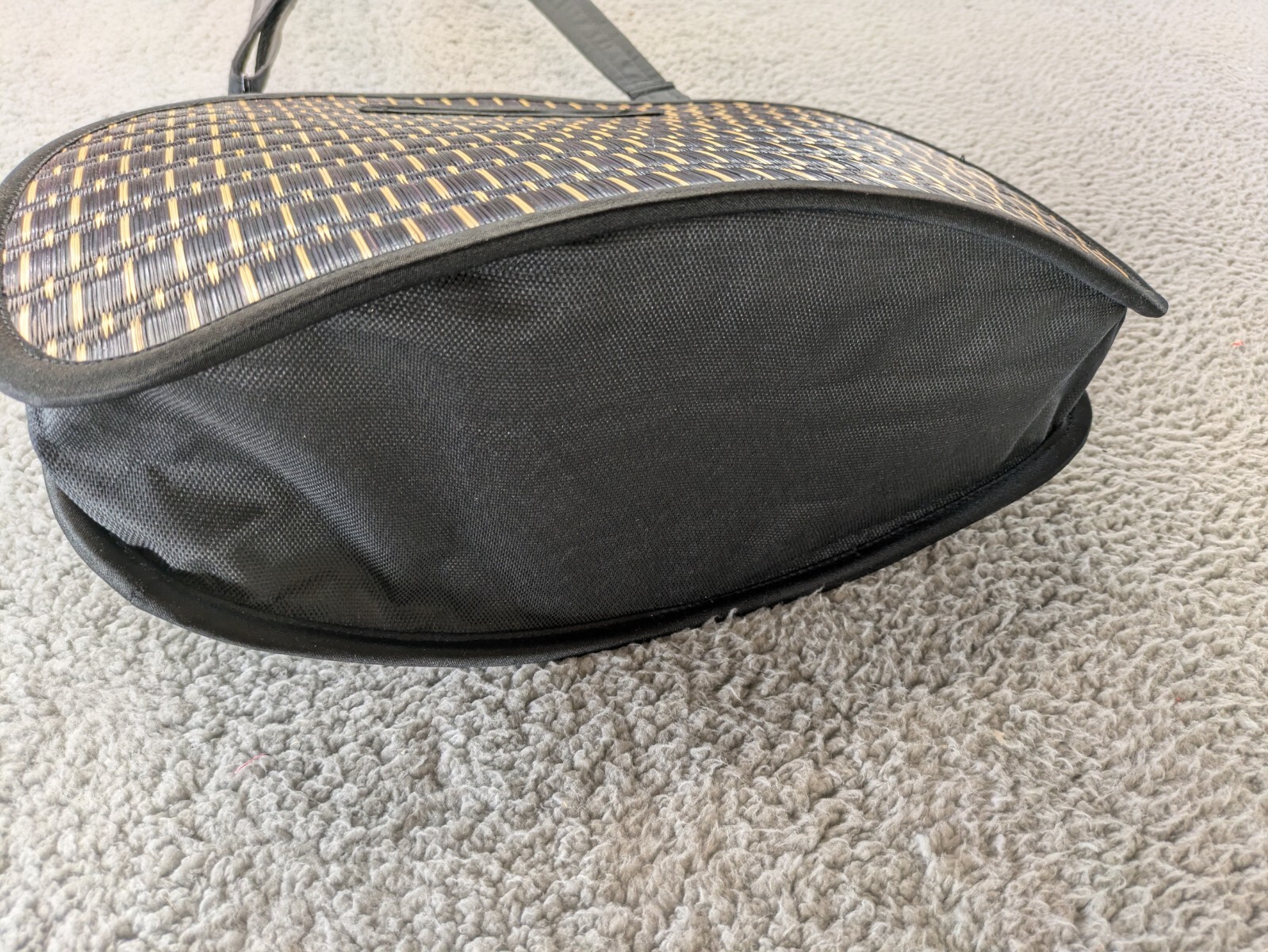 Elevate your accessory collection with the Baskets of Cambodia Crossbody Handbag, a versatile and stylish organizer bag that complements any outfit. Crafted from durable wicker with a classic black exterior, this bag is adorned with a chic striped pattern and features a practical semi-circular shape. Measuring at a generous 15 inches in width, 12 inches in height, and 7 inches in depth, it's the perfect size for everyday essentials and more. The bag's interior is thoughtfully lined in a contrasting beige fabric, ensuring your items stay secure and organized in the large compartment. The crossbody strap, made of strong nylon, allows for comfortable and convenient carrying, while the velcro closure provides a snug seal. With features like adjustable straps, inner pockets, and a detachable pouch, this bag is designed to cater to your needs whether you're headed to the office, enjoying a casual day out, traveling, or attending a cocktail party.