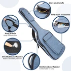 ♫ Unique Design: Durable bass bag is made of slight waterproof material, smooth soft lining fabric, reinforced double stitching and shockproof rubber bottom. -way metal zippers slide very smoothly. Special blue color, make bass gig bag become more unique and attractive. ♫ Practical Features: with 46 inch full size bass guitars. Thick padding soft shell bass guitar case protect bass from scratch. Guitar neck strap keep bass guitar in place. ♫ Large Capacity: Small Exterior Pouch for bass guitar picks, strings, capo, tuner, cables storage, etc. Large front pocket big enough to hold various music stuffs, like A4 and US letter size of music sheet/books, guitar strap, CD, , smartphone, documents and more musical accessories. ♫ Easy Carrying: Dual Adjustable Breathable Shoulder Straps, Reinforced Side Handle and back hanger loop, provide multiple carrying ways to transport your beloved bass guitar, such as home, travel, school, club, gigs, rehearsals or classes. Back hanger loop can be hung on the wall when bass guitar bag not in use. ♫ Perfect Gifts: Fashion bass case is a good present for your family member, guitarist friends, guitar teacher, music students and other guitar players. As birthday gifts, back to school gifts, party gifts, anniversary gifts, Christmas gifts, thanksgiving days gifts and so on.(Tips: THIS BASS BACKPACK CAN'T HOLD ACOUSTIC BASS GUITAR.)
