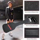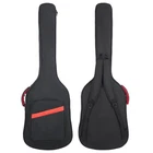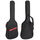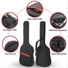 Made of durable scratch resistant fabric, with sturdy double zipper, anti-slip rubber pad on the bottom to prevent abrasion to the fabric. Soft padding gig bag for electric bass guitars, great to keep the dust, water and dirt off your bass. Unique red band design adding character to the dull black gig bag. Fits for full size 46 inch Electric Bass Guitar. Lightweight electric bass guitar backpack has a neck holding strap to keep the bass in place. Thick padding shell provide basic protection to keep the musical instrument from light-travel nicks, scuffs and scratches. Side grip handle, back hanger loop and dual adjustable padded shoulder straps, provide multiple convenient ways to get the guitar from place to place. As electric bass guitar carrying case or bass guitar backpack to transport your bass back and forth to gigs, travel, home, church, lessons, gigs, concert, music school, rehearsals, studio, club, musical instrument shop. Zippered pouch hidden under red stripe perfect for guitar picks, cables, strings and other small stuff storage. Large front pocket can hold music book, sheet music, guitar straps, tuners, capos and other musical accessories. Portable electric bass guitar bag is a nice gift for guitar beginner, students, guitartist. Such as birthday gifts, back to school gifts, party gifts, surprise gifts.(NOTE: Please measure your bass before purchase, make sure you get the right size bag.)