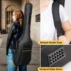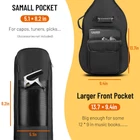Lightweight Portable Electric Bass Guitar Gig Bag: Bag dimension 48.8”x16.1”x2.3”, upper bout 14.2”, lower bout 16.1”, designed for 43 in and full size 46 in Electric Bass Guitar. Fits Precision and Jazz Bass Style Bass Guitars. NOTE: this guitar bag is too small to hold an acoustic bass guitar. To make sure you buy what you want, please compare our bag's dimension with the guitar's first to see how it will look. 0.3in/8mm Padding Throughout: This padded bass bag is impeccable for defending your gear against in-home accidents as well as light-travel nicks, scuffs and scratches, also the wear-resistant zipper and rubber shockproof base protect the guitar well. Back Loop Handle: There is a loop handle on the back of the guitar bag, which can be hung on the wall when not in use. Keep your guitar bag clean and save space. Large Front Pocket: Exterior pouch 13.7”x9.7”x2.1” large enough to hold A4 and US letter size music sheets books, tablet, smartphone. Small Pocket for Musical Accessories: top small pocket for storing small stuff such as tuners, strings, cables, picks, guitar straps. Dual Adjustable Shoulder Straps + 2 convenient grip handles, providing multiple ways of carrying. Carry as a backpack using the shoulder straps to reduce the stress of the guitar, or take it directly in your hand with the side handle.