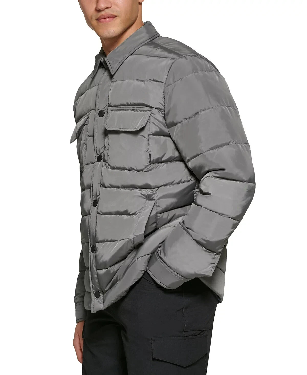 Point collar; full-zip and snap-button front closures Quilted puffer styling; snap-button cuffs; BWarm tech helps keep you warm Two front hand pockets; two flap pockets at the chest Polyester (100% recycled) Machine washable Machine washable