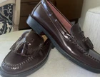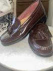 The Bass Weejuns Leather loafer for women in size 7 features a stylish design with tasseled accents, perfect for adding a touch of sophistication to any outfit. Crafted from high-quality leather in a rich wine/cordovan color, these loafers are both timeless and elegant. Made in El Salvador, these shoes combine quality craftsmanship with a classic style that is sure to become a staple in any woman's wardrobe. As seen in photos