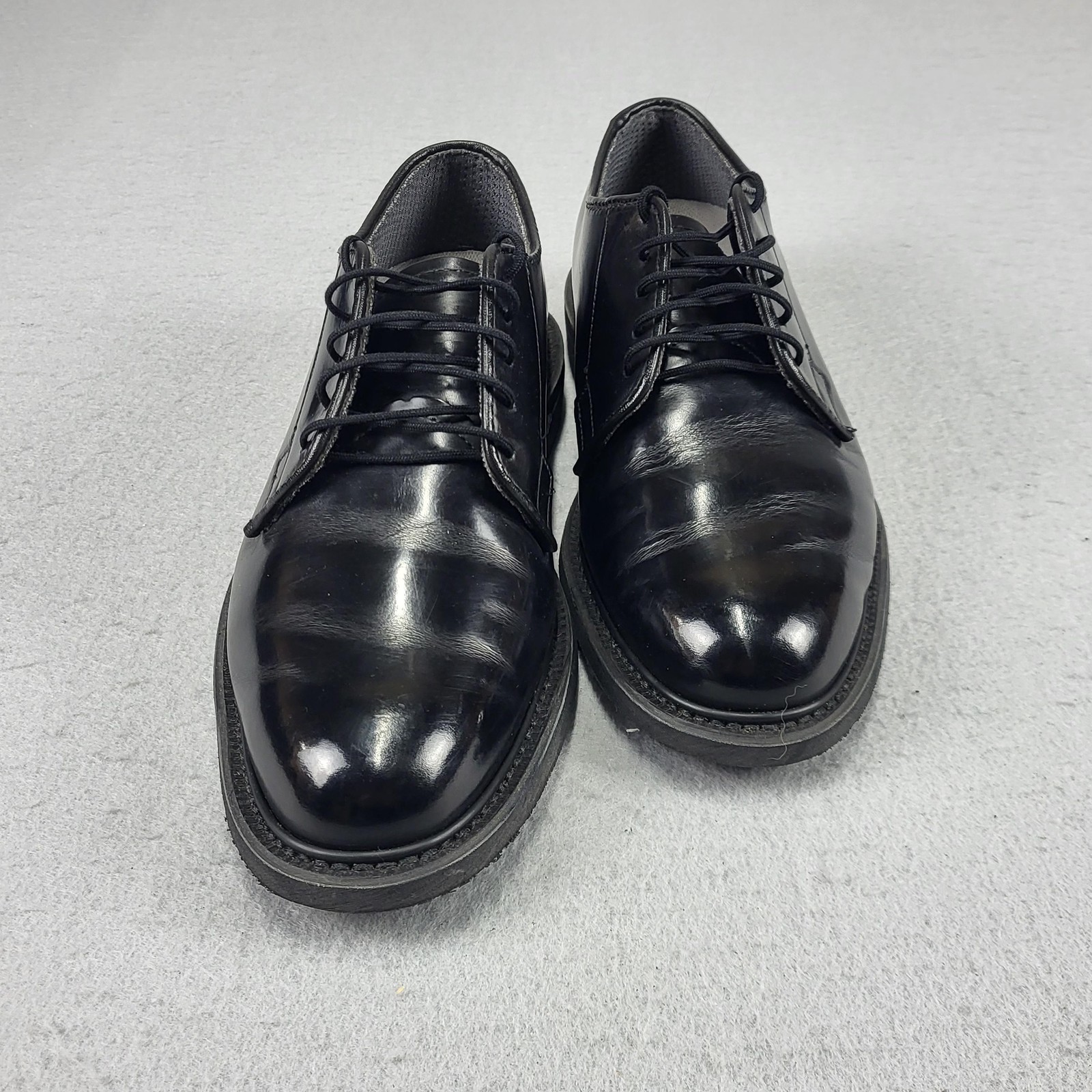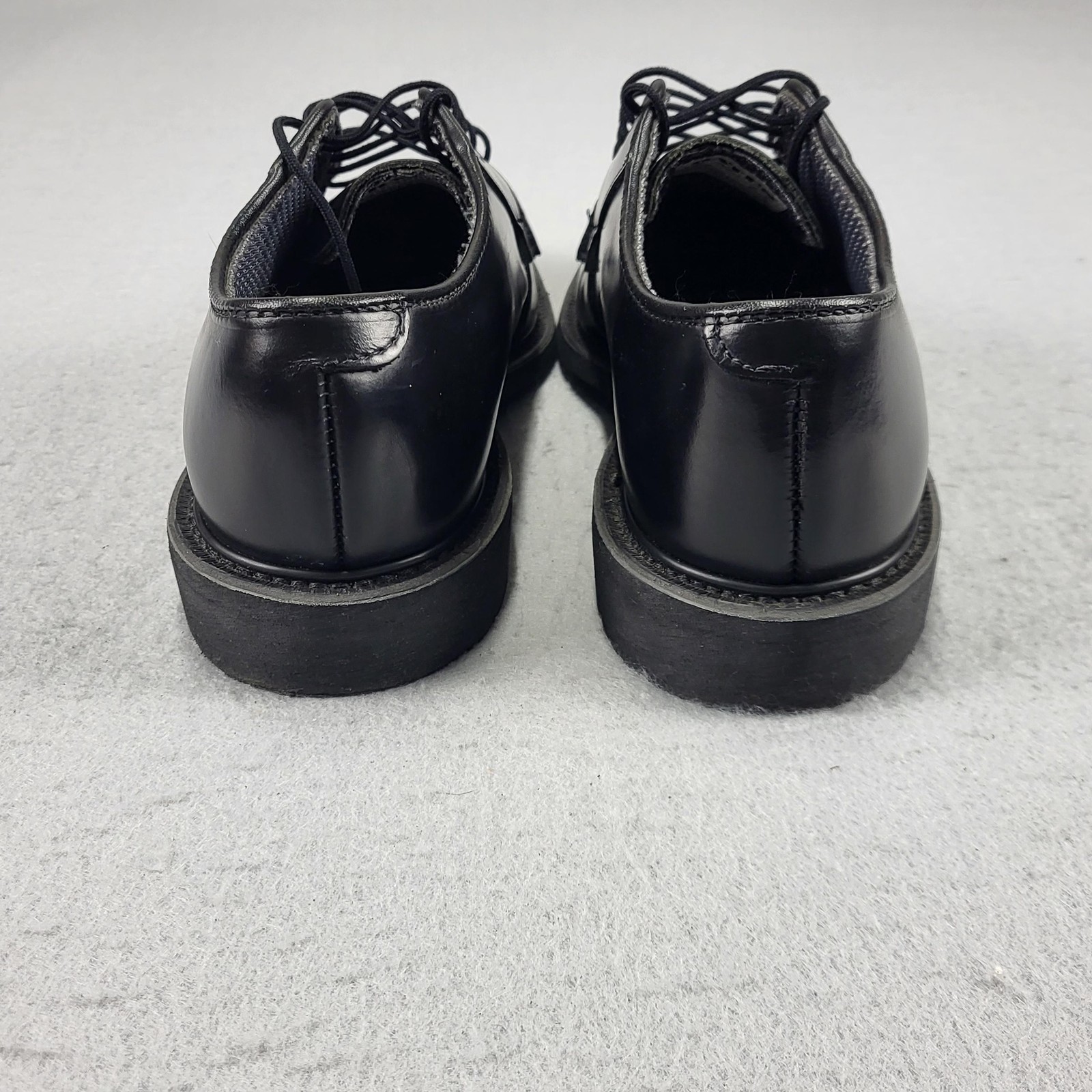 Brand: Bates Model: 15B25-000875 black leather lace-up oxford dress shoes with slip-resistant Vibram outsoles. Color: Black. Size: Mens US 7.5 E (wide width). Materials: Leather upper; balance man-made materials; fabric-lined cushioned insole; rubber Vibram outsole. Details: Plain-toe oxford profile with five-eyelet lacing, padded collar and tongue, textured slip-resistant Vibram soles, Bates logo printed on the insoles, interior tongue tag showing style code "15B25-000875-75-27," width "7.5 E," production code "65019810," and note "LEATHER UPPER BALANCE MAN MADE MATERIAL." Use: Versatile uniform or dress shoes suitable for office wear, special occasions, or law-enforcement and security professionals. Disclaimer: Different sources of lighting can change your perspective on the color of the clothing Disclaimer: All clothing is measured in a laying position. All items have been cleaned per eBay standards & policies. We ship items daily via USPS Ground Advantage or Priority Mail with a tracking number for confirmation, so expect a quick delivery. We also offer free 30-day returns!! Please feel free to reach out anytime with any questions you may have. Thank you for shopping at Curiosity Corner RVA!!! Follow my store for greater discounts seller:kevredfor_0