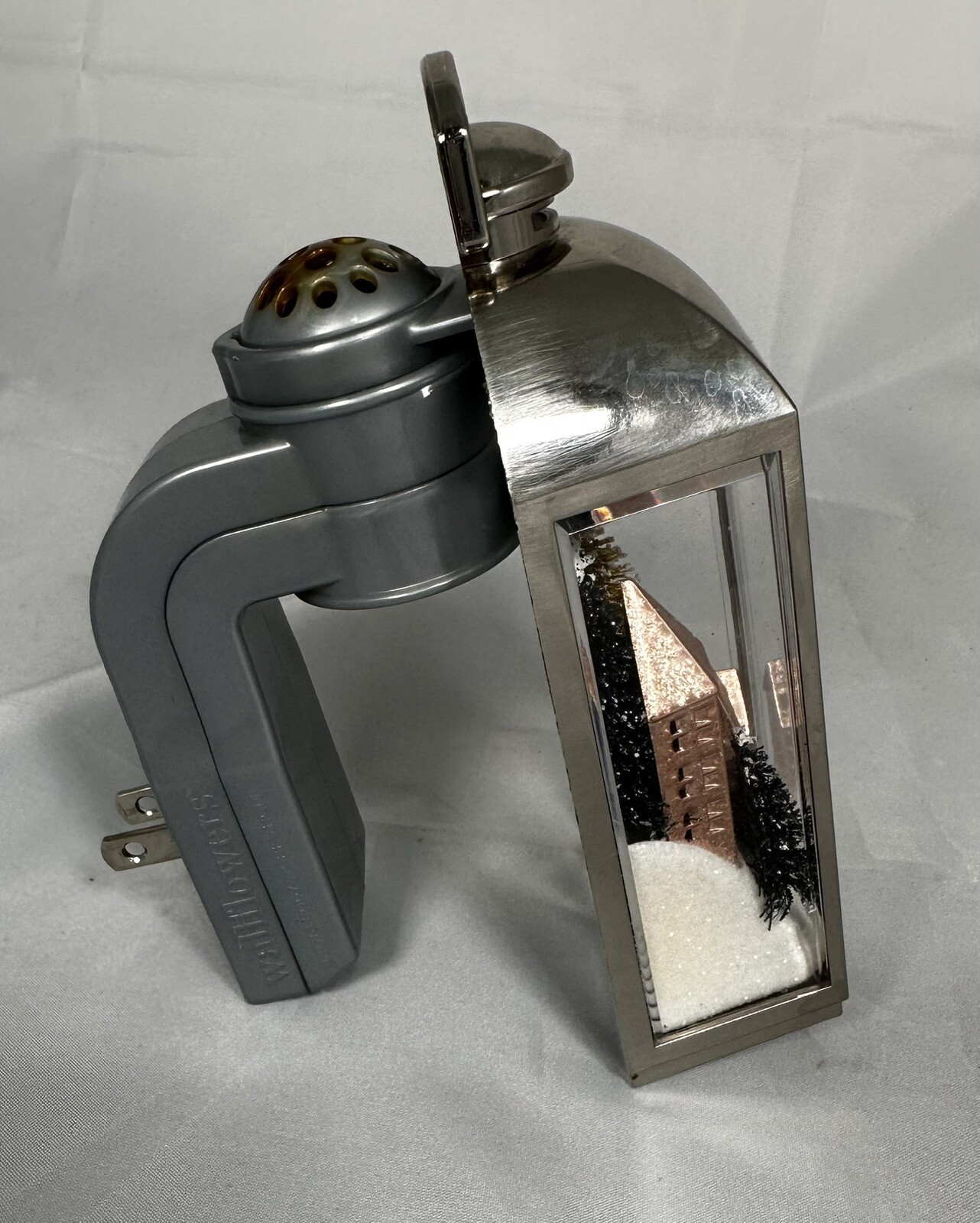 Welcome to my auction! You are purchasing a really nice Bath and Bodyworks, gold Snowy Christmas village wallflower light up. This item has been used and has some spots, discoloring and staining on it. Please see all pics