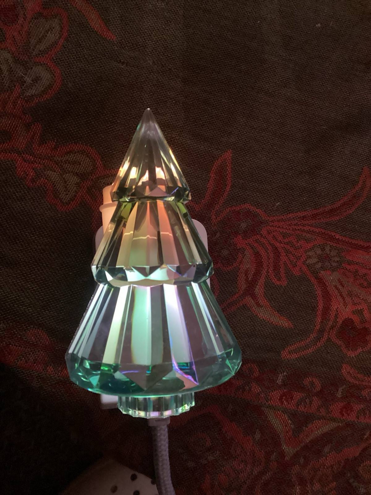Add some holiday cheer to your home with this Bath & Body Works Green Iridescent Crystal Christmas Tree Wallflower Plug In. The plug in is designed to be used with essential oils and features a diffuser to help refresh your space. The tree design is perfect for the Christmas season and the halo green color adds a touch of elegance. This plug in is used and works great. Does have a bit of staining on the top.
