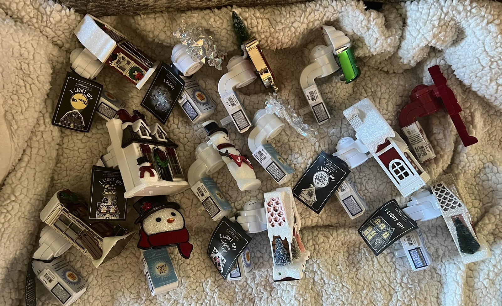 I WILL REVISE ANY OF MY LISTINGS TO YOUR LIKING IF YOU DO NOT WANT EVERYTHING PICTURED OR YOU WANT TO CUSTOMIZE THE LISTING. JUST ASK ME ANY AND ALL QUESTIONS AND WE CAN WORK TOGETHER TO REVISE ANY LISTING YOU LIKE…. ALSO I HAVE MANY PRODUCTS I DID NOT GET TO LIST YET SO JUST ASK I MIGHT HAVE IT. YOU GET THE WHOLE 13 PC SET WITH THIS LISTING Bath & Body Works x13 wallflower plug ins new 2022 dapper snowman nightlight 2021 joyful snowman nightlight 2021 Christmas barn projector nightlight 2021 holiday house nightlight 2021 santa’s workshop projector nightlight 2022 holiday house projector nightlight 2022 entry door house twinkle nightlight 2022 house projector nightlight 2022 snowflake glow nightlight 2022 snowflake nightlight 2021 holiday sleigh nightlight 2021 merry eggnog nightlight 2022 red velvet nutcracker plug in ( no light ) All unused 13 wallflower plug ins 2021 & 2022 YOU GET ALL WITH THIS LISTING