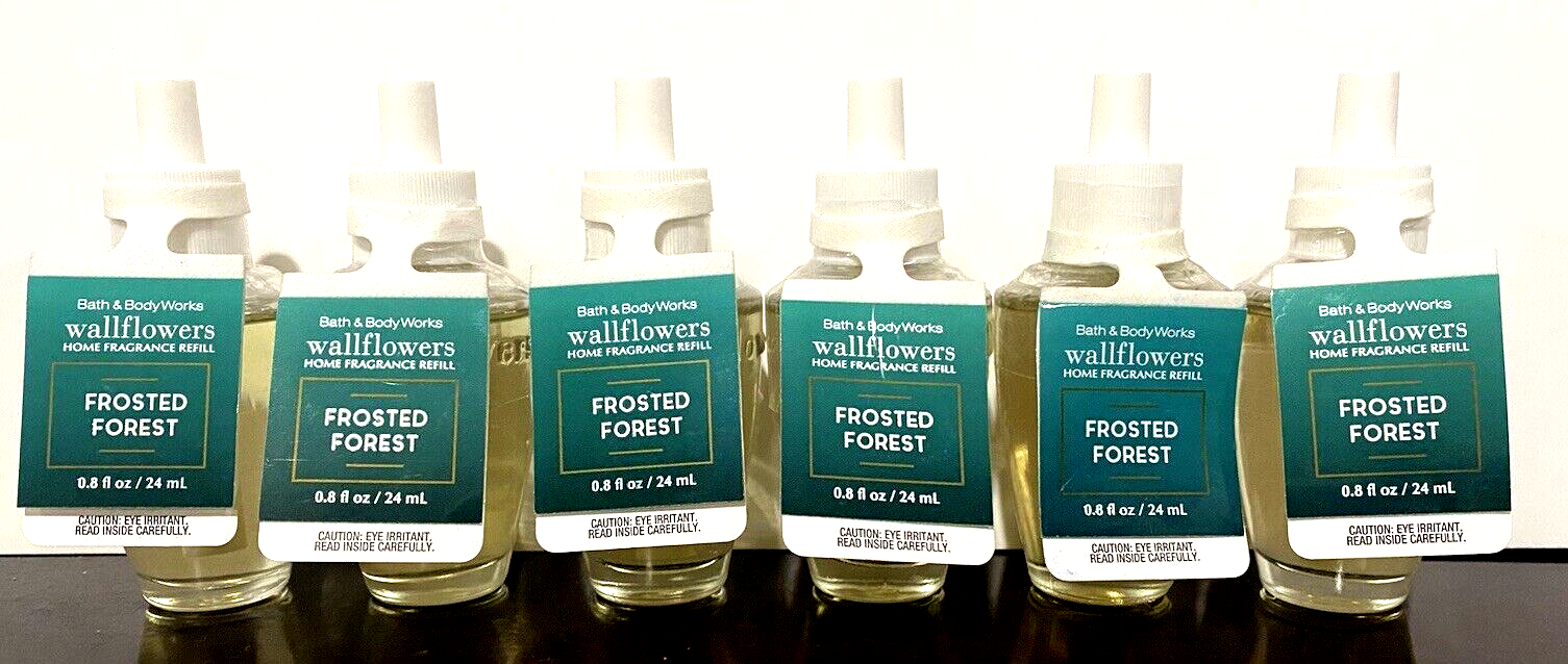 Bath & Body Works Wallflower Bulb Refills LOT OF 6 * .8 fl oz Each BRAND NEW Scents: * 6 FROSTED FOREST Wallflower Fragrance Refill Bulbs Scent Notes: Winter Pine Needles, Frosted Eucalyptus & Icy Peppermint Non Smoking Home No Returns Check Out My Store For More Great Gift Ideas! Feel free to ask any questions