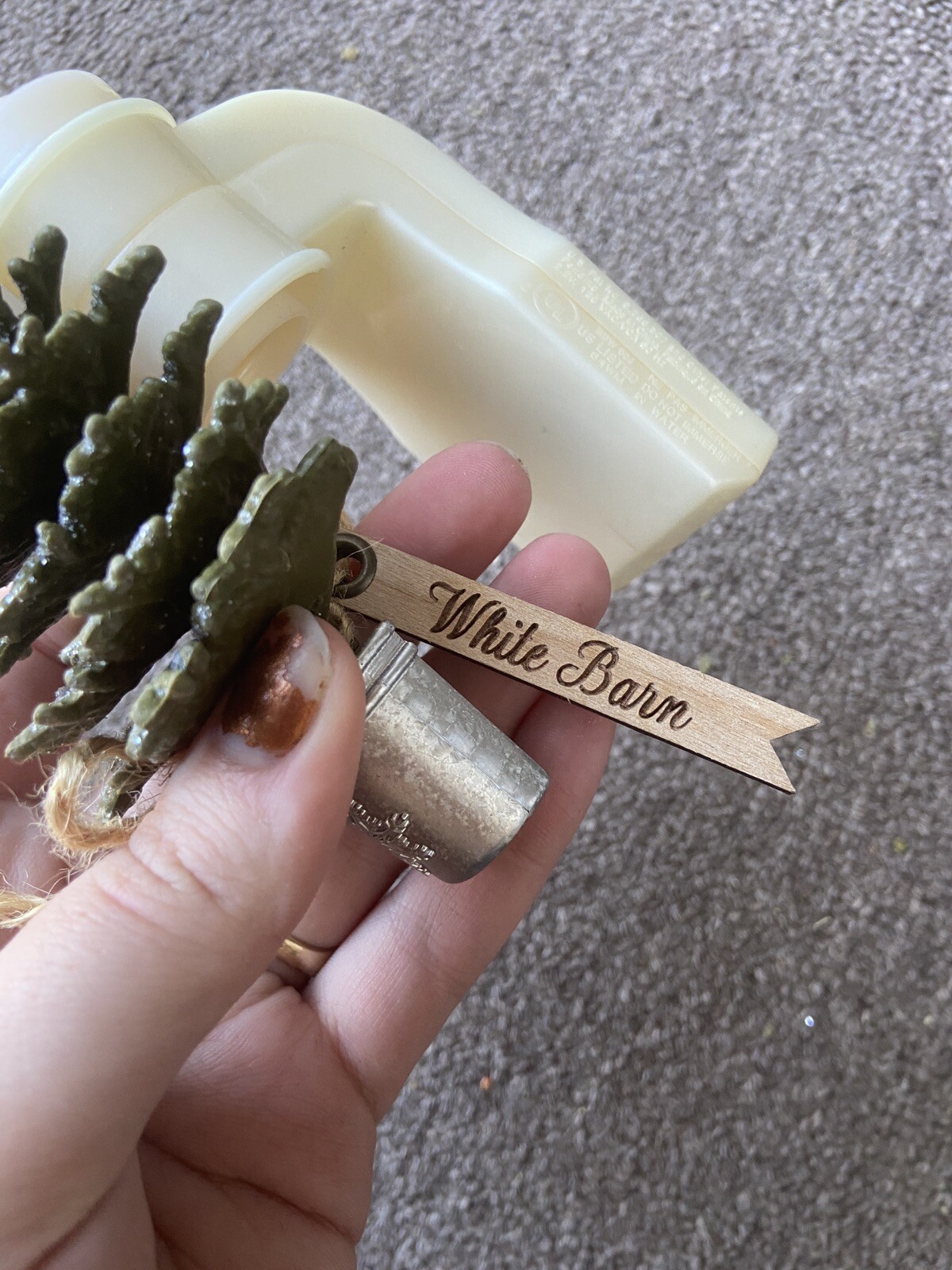 Older tree design. Has a little white barn tag on it. Has some scent residue on the top which is normal for wallflowers that have been used.