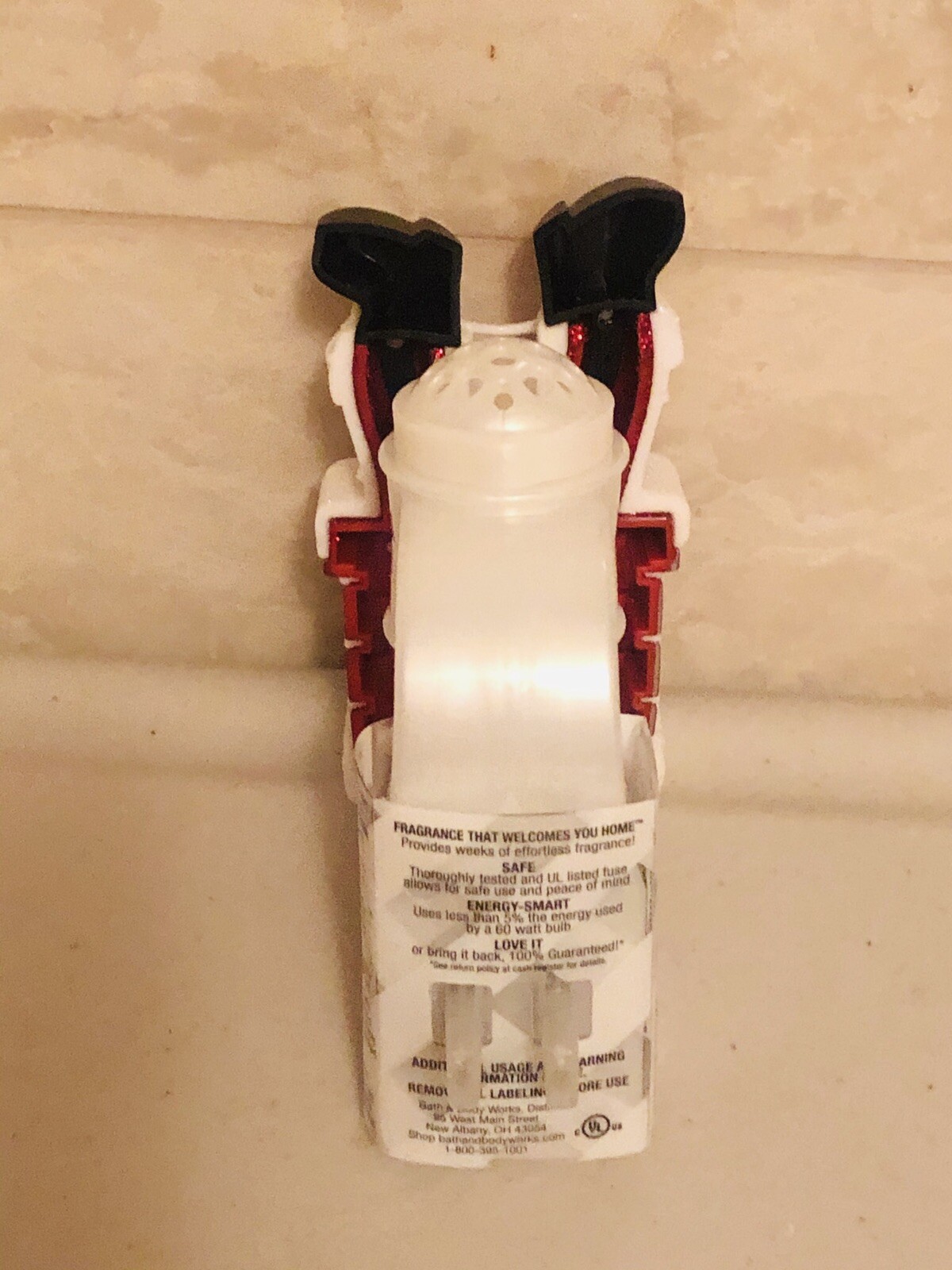 Character Family:christmasInstallation Area:WallFeatures:Santa in Chimney StuckRoom:Living RoomType:Plug-in/Nightlight WarmerMaterial:PlasticTheme:Santa in Chimney StuckColor:BlackOccasion:ChristmasStyle:TraditionalProduct Line:Santa in Chimney StuckPattern:Santa in Chimney StuckBrand:Bath & Body WorksPower Source:Wall Plug-InModel:Santa in Chimney StuckScent:NA
