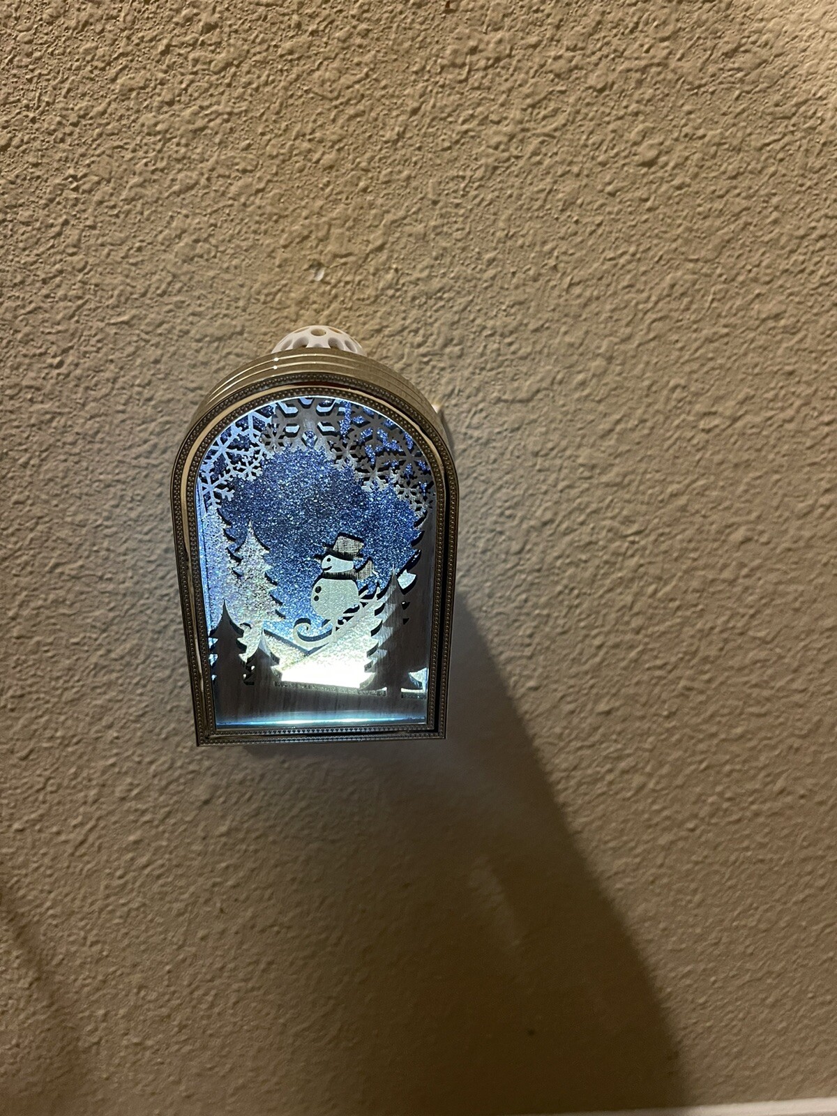 For sale, a Bath & Body Works Wallflower Christmas-themed Plug-In. Lights up, terrarium design, with cutout snowman and winter scene. Very rare design, very cute!! Sold exactly as pictured, no scent bulbs included. P hotos are always of the actual item you will receive. FREE shipping is included!! (first class ) Stated shipping charge includes up to 100 dollars of insurance. Any additional is the responsibility of the buyer . NO INTERNATIONAL SHIPPING! We will be happy to combine shipping on multiple items! We will do our best to ship items within 1 day of payment. Thank you:). ***Please if you are ever dissatisfied in any way with your purchase make sure you contact me PRIOR TO LEAVING DAMAGING FEEDBACK!! *** This is how I make my living and I take my career seriously. I strive to provide the best customer service and will do my best to resolve any complaints.:).Thank you for shopping with stephm143, LLC.