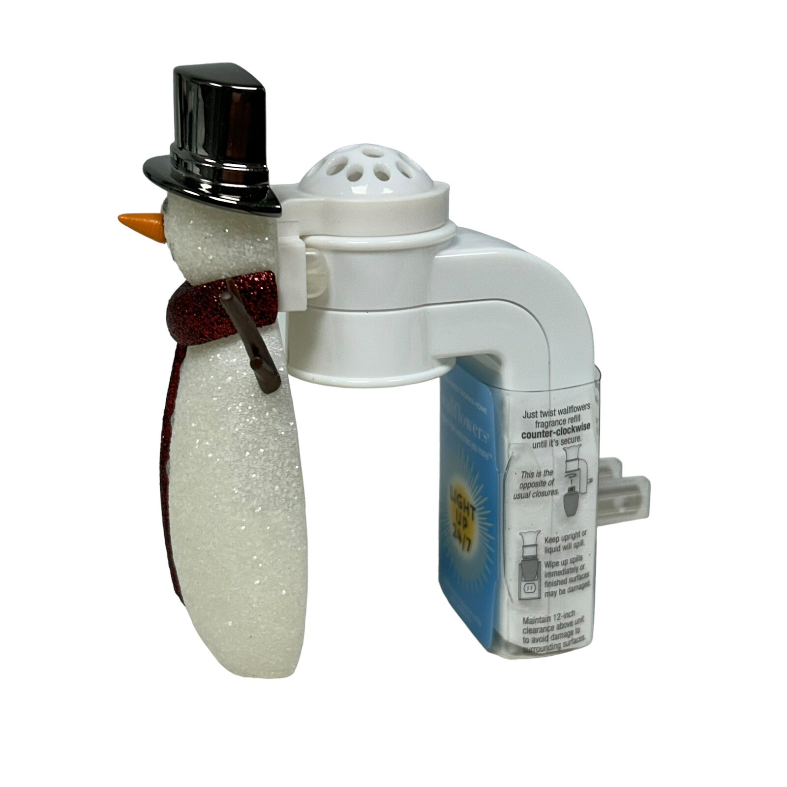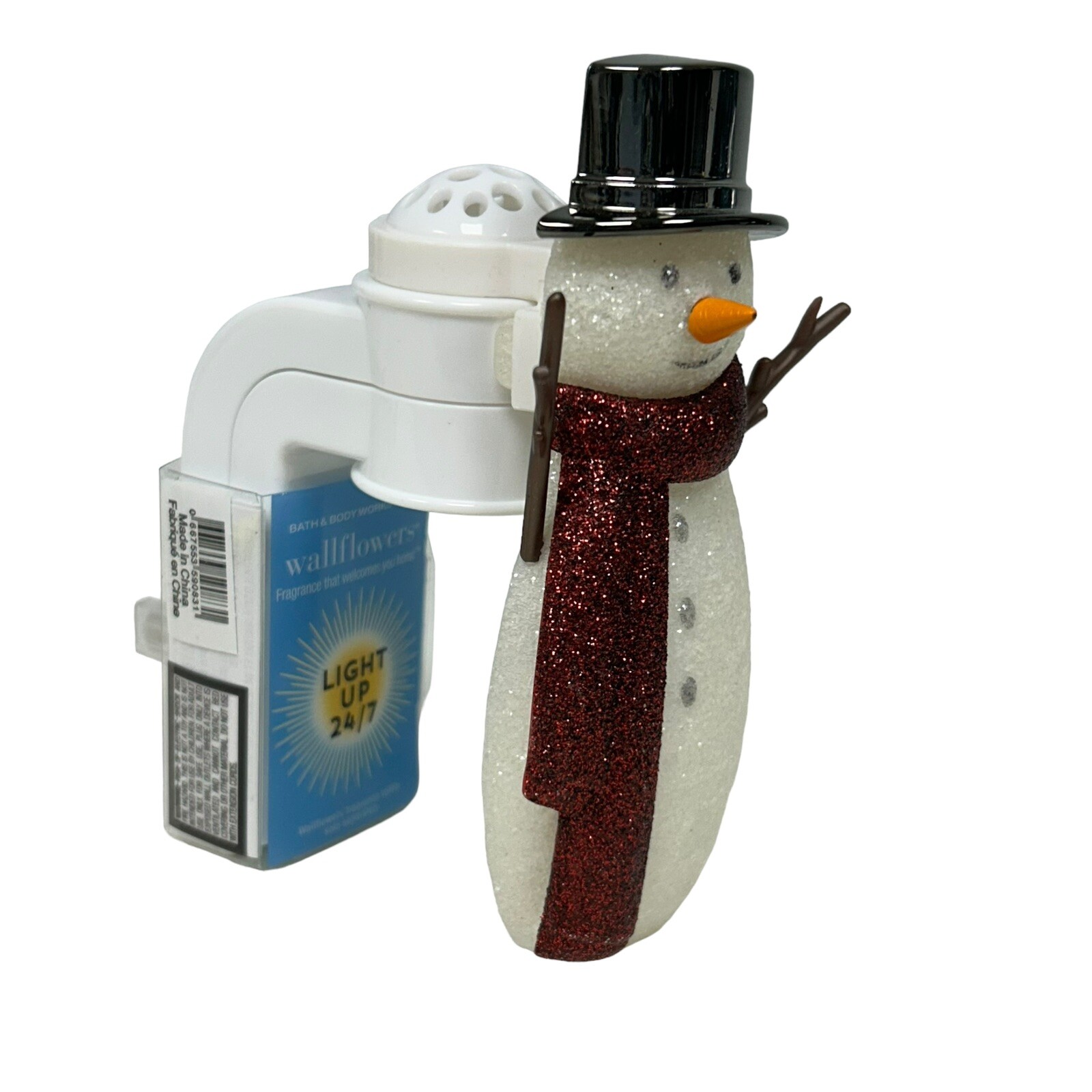 Bath &Body Works Snowman Glitter Red Scarf Light up Wallflower Plug-In Christmas Add a festive touch to your Christmas decor with this Bath & Body Works Snowman Glitter Red Scarf Light up Wallflower Plug-In. This plug-in/nightlight warmer is perfect for creating a cozy and relaxing aroma in any room. It features a diffuser that disperses the fragrance evenly, making it ideal for adults who love aromatherapy. The multicolor snowman design adds a holiday cheer to your home, while the wall plug-in ensures that you can use it anywhere. This unit is perfect for those who want to add a touch of Christmas spirit to their living space. Get your hands on this limited edition Bath & Body Works Snowman Light up Wallflowers today!