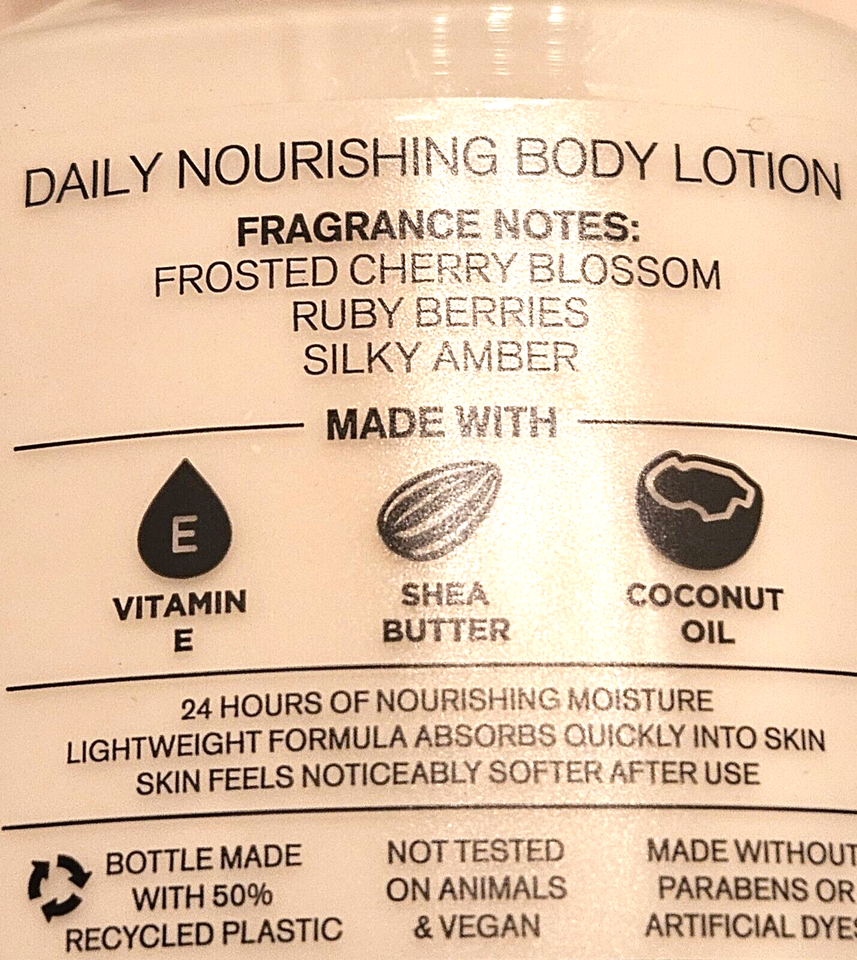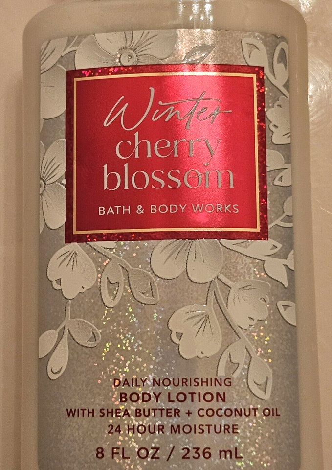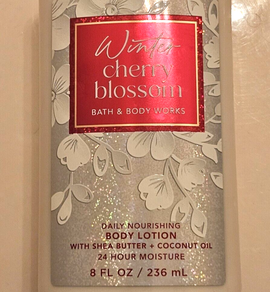 Bath & Body Works Winter Cherry Blossom Daily Nourishing Body Lotion 8 oz with Shea Butter +Coconut Oil & Vitamin E 24 hour Moisture Frosted Cherry Blossom Ruby Berries Silky Amber