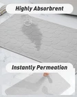 【Absorbent Cloth Top】The moment water pulls on the absorbent bath mat, it will be absorbent instantly without any drops stay on the surface, greatly reducing the possibility of accidently falling, water Absorption reaches 2 times of other fiber mats 【100% Odorless Non Slip Backing】Rubber backed bathroom rugs provide strong friction on wet slippery floors and prevent slipping and falling, especially for family with kids and elderlies, meanwhile, non slip bath mat prevents moisture from seeping into the floor and causing damage 【Thin Bath Mat】Our bathroom mat won’t get stuck under the door, 0.3 inches of thickness is perfect to stepping on, making the door easy to open and close, even in high traffic areas, the low pile bathroom rug won’t crumple and still fit tightly on the ground 【Machine Washable】Durable bath mats for bathroom floor can withstand multiple machine washes without falling apart, hang the bath mat to dry, the rubber back won’t crack 【Multi-Function Bath Rug】Soft cloth, keep you away from wet, ice cold bathroom floor, with an anti-slip rubber layer on the back of the super absorbing towels, our thin bathroom floor mat is both skid resistant and water absorbent