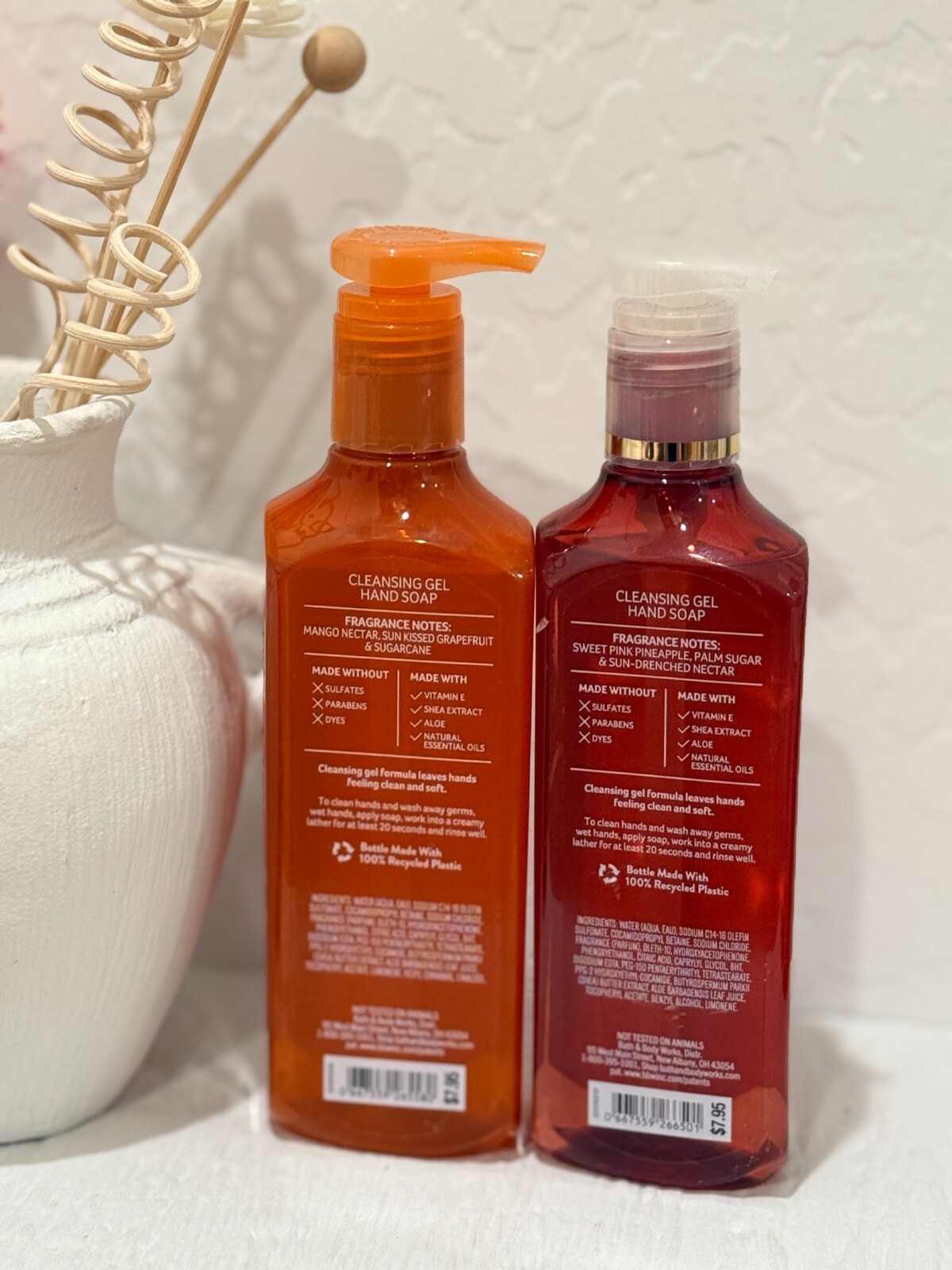 Bath and Body Works 2-PC CLEANSING Gel Hand Soap 8 oz / 236 ml BRAND NEW | WITHOUT BOX | NEVER USE | NOT SEALED {CHECK PICTURES FOR PRODUCT REFERENCE} ____________________________________ SET INCLUDES: (1) PINK PINEAPPLE SUNRISE (1) MANGO MAI TAI ******** Thank You for visiting our store. PLEASE READ BEFORE PURCHASING! Hope you find what you are looking for. You are always welcome to message us for any questions about our products. NOTE!!! CARDED SAMPLE VIALS are NOT filled to the TOP due to laws regarding the transport of liquid containing alcohol. The content is filled by the manufacturer and is equal to what is listed on the manufacturer's card. As it goes by the amount of liquid inside of them not the size of the bottle, And it is the same way as we bought them. SHIPPING: We ship through USPS FIRST CLASS with tracking number. Items should arrive within 1-6 business days after being shipped (within the USA). We take pride in shipping the items ASAP. Items will be shipped the same day or next day depending on payment/purchased time unless it’s a Weekend or Holidays. RETURNS: Returns are ACCEPTED on NEW, UNUSED & UNOPENED Products. We will Issue Refunds minus $3.99 Shipping Cost. *If you have any special requests, if the item is a Gift feel free to let us know (as all orders will be sent out with a packing slip), We’ll be more than happy to help you out for a personal message.* If you are HAPPY with your Purchase, We will appreciate it if you take your time to leave us a Positive feedback for others to know your experience. Thank You Love! Happy Shopping and Keep on Smiling Loves!