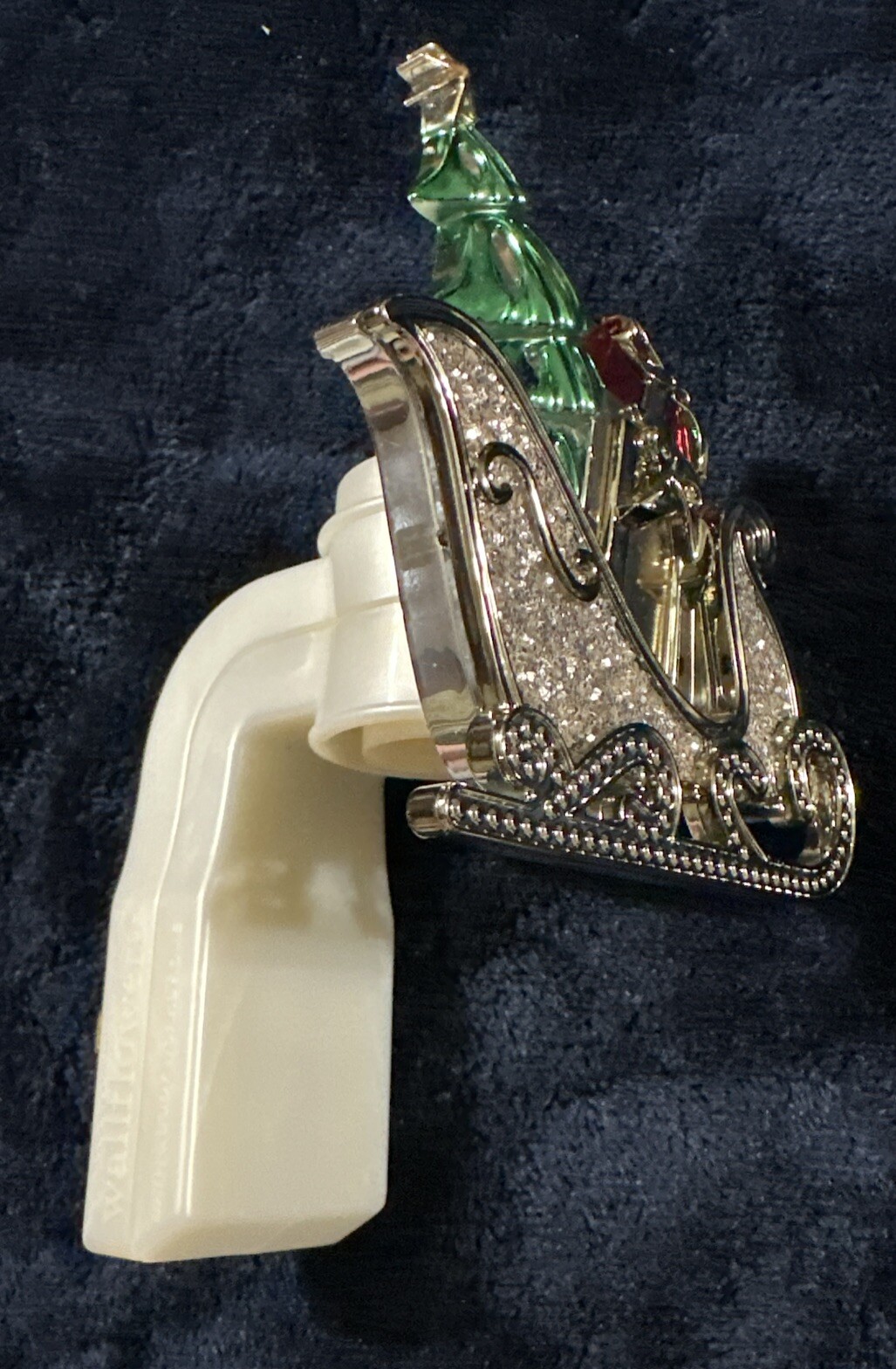 Make your home smell like Christmas with this Bath and Body Works Wallflower Sled Plug in Nightlight. Enjoy the festive scent without any effort as it is powered by a wall plug. The nightlight's sleigh and Christmas tree design will surely add a touch of holiday spirit to any room. This Wallflower is made of plastic and was manufactured in China. It is perfect for adults and comes in multicolor. Get this one-of-a-kind Wallflower today and experience the magic of the holidays!