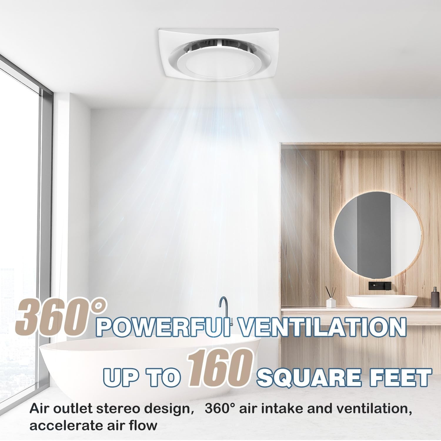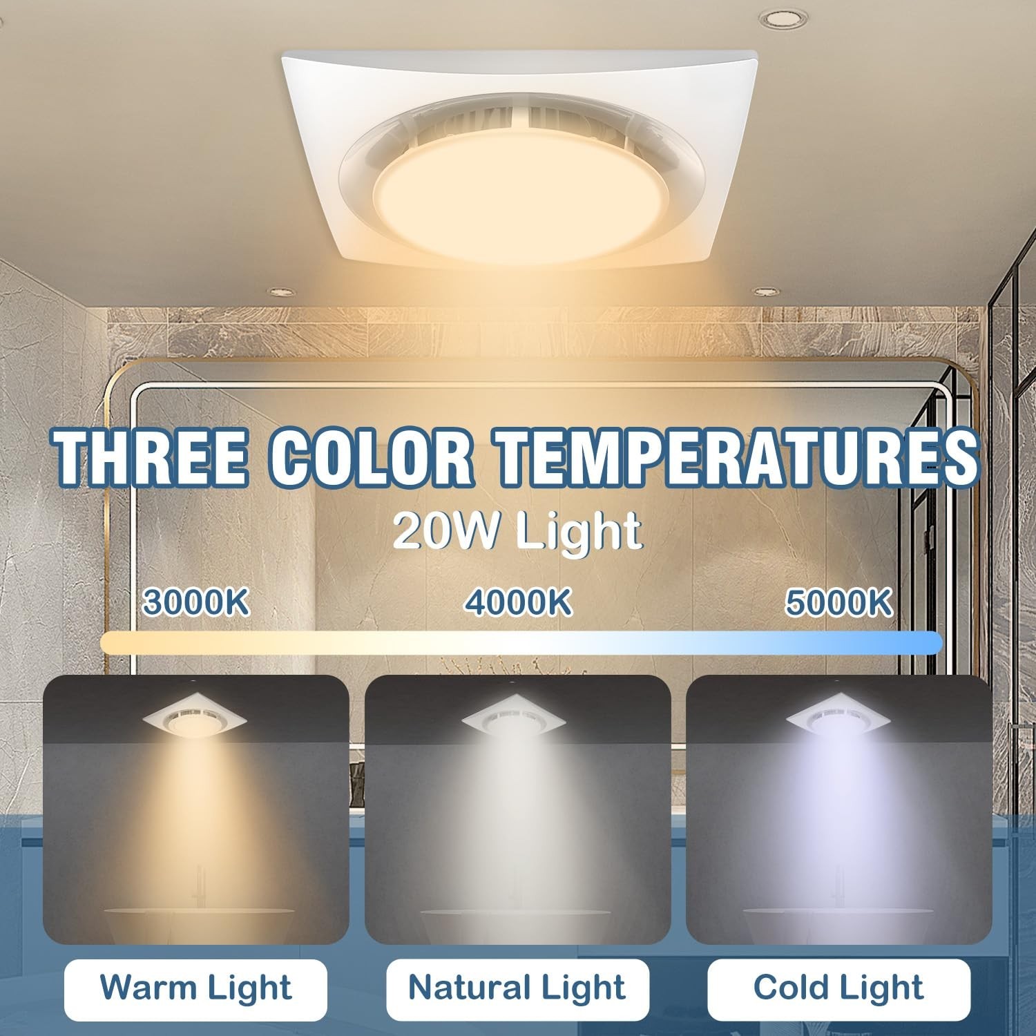Bathroom Exhaust Fan with Light, 110 CFM, 1.0 Sones, 12.16” Ceiling Vent Fan with 20W LED Light, 3 Adjustable Color Temperatures, Ideal for Bathrooms and Toilets Product Details Brand: Heromind Color: white Electric fan design: Exhaust Fan Power Source: ac_dc Style: Modern Product Dimensions: 11.8"D x 11.8"W x 6"H Room Type: Bathroom Special Feature: Waterproof Recommended Uses For Product: Drying Mounting Type: Ceiling Mount Brand: Heromind Color: white Electric fan design: Exhaust Fan Power Source: ac_dc Style: Modern Product Dimensions: 11.8"D x 11.8"W x 6"H Room Type: Bathroom Special Feature: Waterproof Recommended Uses For Product: Drying Noise Level: 1 Sones Finish Type: Painted Air Flow Capacity: 110 Cubic Feet Per Minute Speed: 110 Cubic Feet Per Minute Included Components: Exhaust Fan with Light Indoor/Outdoor Usage: Indoor Model Name: GD-C10 Control Method: Push Button Is Cordless?: No Installation Type: Ceiling Mount Size: Medium Item Weight: 3.96 pounds Item model number: GD-C10 Date First Available: May 30, 2025 Superior Ventilation: Designed to effectively remove steam and odors from bathrooms up to 160 square feet (15% more coverage than a comparable 110 CFM). This lighted exhaust fan strikes a balance between energy efficiency and powerful ventilation, preventing mirror fogging in 3-5 minutes while lowering your electric bill LED Lighting in Three Color Temperatures: No more dim shadows! The 20W LED panel is available in three adjustable color temperatures, (4000K for makeup), comfort and relaxation (3000K for bathing) or daylight clarity (5000K for cleaning). Our bathroom exhaust fan lighting and dehumidification double both, the dual function design is superior to basic single color exhaust fans Quiet Operation: This bathroom ceiling exhaust fan has 1.0 Sones noise level (50% quieter than standard 2.0 pitch bathroom fans) silently removes moisture without disturbing sleep. Ideal for light sleepers and bathrooms connected to a nursery Exit Air 360 Design: This bathroom exhaust fan's three-dimensional vents draw air in from all directions, reducing condensation up to 40% faster than a one-way design and promoting faster airflow to keep your bathroom refreshed Easy to Install & Maintain: Our bathroom exhaust fan light has been carefully designed to fit seamlessly into your ceiling. Easy to install and simple to maintain, this bathroom exhaust fan with light is a practical choice for every home Please Note: 1.This exhaust fan light is made of plastic 2.Unified control of fan and light switches 3. No memory mode; lights must be adjusted manually each time the device is turned on.