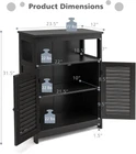 Selected Material & Stable Structure: Made of high quality MDF, the floor cabinet is sturdy and durable without easy deformation. Waterproof NC paint makes it suitable for bathrooms. In addition, 4 strong legs provide excellent stability, ensuring this cabinet can stand freely on the floor. Large Storage Space: This bathroom cabinet can make full use of the available space to provide an ideal storage solution. Wide top and open shelf are suitable for potted plants, aromatherapy, photo frames, magazines, etc. And the cabinet with shutter doors provides additional hidden storage for towels, shower gel or toilet paper. Bathroom Floor Cabinet, Wooden Freestanding Storage Cabinet with Double Shutter Selected Material & Stable Structure: Made of high quality MDF, the floor cabinet is sturdy and durable without easy deformation. Waterproof NC paint makes it suitable for bathrooms. In addition, 4 strong legs provide excellent stability, ensuring this cabinet can stand freely on the floor. Large Storage Space: This bathroom cabinet can make full use of the available space to provide an ideal storage solution. Wide top and open shelf are suitable for potted plants, aromatherapy, photo frames, magazines, etc. And the cabinet with shutter doors provides additional hidden storage for towels, shower gel or toilet paper. Convenient & Safe Use: The bathroom cabinet has an interior shelf with 3 adjustable heights, which can meet the storage needs of items of different heights. Smooth metal knobs make the doors easy to open and close. In addition, with an anti-tipping device on the back, this cabinet can be secured to the wall to avoid wobbling or tipping. Wide Range of Applications: The clean lines and elegant white finish create a simple and modern appearance, enabling the cabinet to complement various decoration styles. It can be used as a storage cabinet which is suitable for bathroom, living room and other places. Easy to Assemble & Clean: With detailed instructions and all hardware delivered, it is easy to assemble your bathroom cabinet in a short time. Its smooth surface facilitates daily maintenance. Stains left on it can be quickly wiped with a soft damp cloth, which saves your time and labor. Item Specifics Brand Unbranded Color Black Recommended Uses For Product bathroom storage, Bat Product Dimensions 12"D x 23.5"W x 31.5"H|Special Special Feature Adjustable,Sturdy,Waterproof Mounting Type Floor Mount Room Type Entryway, Bathroom, Kitchen, Living Room Door Style Shutter Weight Limit 77 Pounds Included Components 1 X Bathroom Cabinet 1 X Instr Finish Type Painted Size Large Shape Rectangular Number of Pieces 1 Item Weight 26 Pounds Base Type Legs Installation Type Freestanding Top Material Type Engineered Wood Handle Material Metal Back Material Type Engineered Wood Assembly Required Yes Frame Material Wood Is Electric No Item Weight 26 pounds Country of Origin China Item model number KB65847 Date First Available October 4, 2022 Bathroom Floor Cabinet, Wooden Freestanding Storage Cabinet with Double Shutter Selected Material & Stable Structure: Made of high quality MDF, the floor cabinet is sturdy and durable without easy deformation. Waterproof NC paint makes it suitable for bathrooms. In addition, 4 strong legs provide excellent stability, ensuring this cabinet can stand freely on the floor. Large Storage Space: This bathroom cabinet can make full use of the available space to provide an ideal storage solution. Wide top and open shelf are suitable for potted plants, aromatherapy, photo frames, magazines, etc. And the cabinet with shutter doors provides additional hidden storage for towels, shower gel or toilet paper. Convenient & Safe Use: The bathroom cabinet has an interior shelf with 3 adjustable heights, which can meet the storage needs of items of different heights. Smooth metal knobs make the doors easy to open and close. In addition, with an anti-tipping device on the back, this cabinet can be secured to the wall to avoid wobbling or tipping. Wide Range of Applications: The clean lines and elegant white finish create a simple and modern appearance, enabling the cabinet to complement various decoration styles. It can be used as a storage cabinet which is suitable for bathroom, living room and other places. Easy to Assemble & Clean: With detailed instructions and all hardware delivered, it is easy to assemble your bathroom cabinet in a short time. Its smooth surface facilitates daily maintenance. Stains left on it can be quickly wiped with a soft damp cloth, which saves your time and labor. Specifics About This Item Brand - Unbranded Color - Black Recommended Uses For Product - bathroom storage, Bat Product Dimensions - 12"D x 23.5"W x 31.5"H|Special Special Feature - Adjustable,Sturdy,Waterproof Mounting Type - Floor Mount Room Type - Entryway, Bathroom, Kitchen, Living Room Door Style - Shutter Weight Limit - 77 Pounds Included Components - 1 X Bathroom Cabinet 1 X Instr Finish Type - Painted Size - Large Shape - Rectangular Number of Pieces - 1 Item Weight - 26 Pounds Base Type - Legs Installation Type - Freestanding Top Material Type - Engineered Wood Handle Material - Metal Back Material Type - Engineered Wood Assembly Required - Yes Frame Material - Wood Is Electric - No Item Weight - 26 pounds Country of Origin - China Item model number - KB65847 Date First Available - October 4, 2022 All rights reserved.