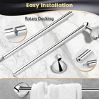 DELICATE APPEARANCE Smooth brushed surface, chamfer edges avoids scratching your body and clothing, Unique round shape and hidden mounting screws add more modern elements for your room decor VERSATILE APPLICATION You can use the towel bars and robe hook in your kitchen, bedroom, bathroom or closets. They are particularly strong and stable, making your home more tidy, beautiful and modern. PREMIUM CONSTRUCTION Enlarge bars and bases constructed of sturdy Zinc alloy, make the bars no easy to bend, which increase safety and firmness. Quality Plating coating ensure anti-corrosion, anti-rust and anti-tarnish. Easy to maintain, premium material and high quality ensures long-term service. DURABLE & SEAMLESS CONNECTION Concealed screw design makes the product look more beautiful and modern, hex screws are reinforced to prevent from rotation. Carefully polished, prevent nick and seamlessly connected between the columns. SPECIFICATIONS Material :Zinc alloy Installation Method : Wall-mounted Surface Finish : Polished Finish Package Includes 1 x 18" Towel Bar 1 x 24" Towel Bar 1 x Toilet paper holder 1 x Robe Towel Hooks 1 x Towel Ring 1 x English Instruction 【Chrome Bathroom Accessories】towel set of 4 included: 1x 24-inch polished chrome towel bar, 1x towel ring, 1x adjustable chrome toilet paper holder and 1x chrome towel hooks to keep your shower organized and tidy, ensuring towels, bathrobes and paper towel rolls are easily accessible Access and store properly. 【Polished chrome Towel Bar】towel hanger for bathroom are polished through multiple processes to make them seamless and smooth, protecting them from scratches during use. The smooth brushed surface features a classic design with a minimalist style with clean and graceful lines, giving your bathroom a stylish look. 【Metal Material】The rods of bathroom towel are made of thickened SUS304 stainless steel, durable, not easy to appear daily scratches, thickened diameter of the tube so that the towel bar is not easy to bend. Exquisite spray paint makes the bathroom towel holder set not easy to fade, the surface polished chrome alloy, make this bar more novel, bright colors. 【Easy to Install】We provide all the installation screw accessories needed for the wall towel rack in the package, and an installation instruction manual is also provided in the package, you don't need to worry about how to install it, and we will provide 24-hour online service 【Classic Design】Our bathroom fixtures has a minimalist style with clean and graceful lines, making it easy to match a variety of styles. A classic look like our towel holder for bathroom wall won't go out of style.