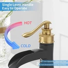 Size: Single Hole Bathroom Faucet Brand BWE Recommended Uses For Product Bathroom Mounting Type Deck Mount Finish Type matte black and gold Material Brass Color Black & Gold Number of Handles 1 Included Components Installation Hardware, faucet, hose Hole Count 1 Special Feature waterfall spout About this item Easy to Install: With a single hole deck mount, this bathroom sink faucet can be easily installed on any sink or countertop. Waterfall Design: The waterfall spout design delivers a gentle, cascading flow of water, making it a stylish and functional addition to any bathroom. High Quality-Solid brass bathroom faucet heavy duty material construction for reliable and durable.The cartridge adopts ceramic sealing technology,reduce leaking points and provide smooth water flow. Hassle-Free Maintenance: The finish is easy to clean and resists tarnishing, ensuring your faucet looks great for years to come. Smooth Operation: The single handle design allows for easy and precise temperature and water flow control, making it an ideal choice for daily use in any bathroom.