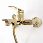 Bathtub Mixer with Shower Head Gold Luxury Bathroom Faucet Set Modern Design Technical data: Battery type: Bathtub Material: Brass Finish: Gold Body covered with 4-layer Coating Head: Ceramic Changing the water temperature: Mixer Connection: 1/2 inch Spout range: 175 mm Battery width: 175 mm Battery height: 115 mm Hose length: 150 cm Model: JS-634903G Set contents: Faucet, Shower hose, Shower head Description of the product offered We present you with a beautiful, extremely functional and modern faucet. It is a product that will perfectly fill your bathroom space while maintaining an impeccable appearance and aesthetics of the interior. Thanks to the innovative production phase, it is durable and easy to keep clean. Exclusive finish in gold gloss and attention to detail are the greatest advantages of the product. The faucet is adapted for wall mounting above the bathtub. IN OUR OFFER YOU WILL FIND THE ENTIRE SERIES OF VIRAL BATTERIES. Suitable bathtubs and other bathroom accessories are available at our other auctions. PVD technology PVD (Physical Vapour Deposition) is a technology used to color metal surfaces. The colored layer is produced and applied under special conditions - by physically applying coatings from the gas phase. The effect is achieved in a vacuum chamber and is created by means of steam treatment at high temperature. During the coloring of stainless steel, physical phenomena are used, such as vapor condensation or crystallization. Thanks to the technologically advanced coating method, we obtain a surface 15 times more durable than classic galvanization. This guarantees high resistance to mechanical damage, corrosion and all kinds of factors influencing the slow erosion of the product surface. Resistance and timeless shine are the main advantages of the innovative and extremely durable PVD plating method. The PVD coating phenomenally reflects the desired color, showing the full color intensity . Main advantages of PVD coating: Perfectly smooth 15 times more durable than galvanizing Resistant to mechanical damage, scratches, corrosion