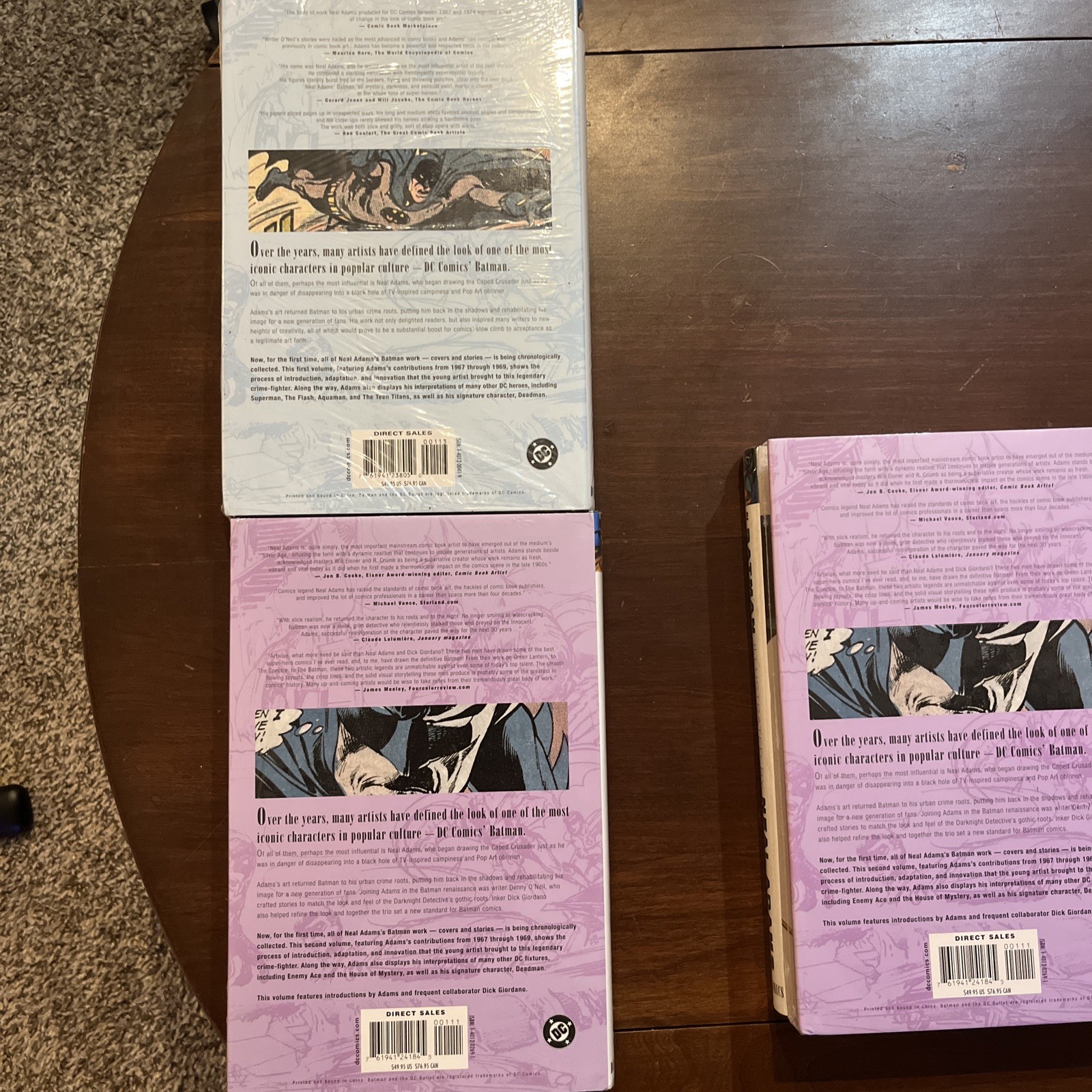 Volumes 1, 2, and 3, 3 books total The product is a hardcover book titled "Batman Illustrated by Neal Adams Volumes 1 And 2." It features illustrations by artist Neal Adams and showcases the character Batman within the US Comics tradition. Published by DC in 2003, this book is a single unit in English language and falls under the genre of illustration within the Modern Age era of comics. Perfect for comic book collectors and fans of Batman, this deluxe edition showcases the iconic character in a visually stunning format.