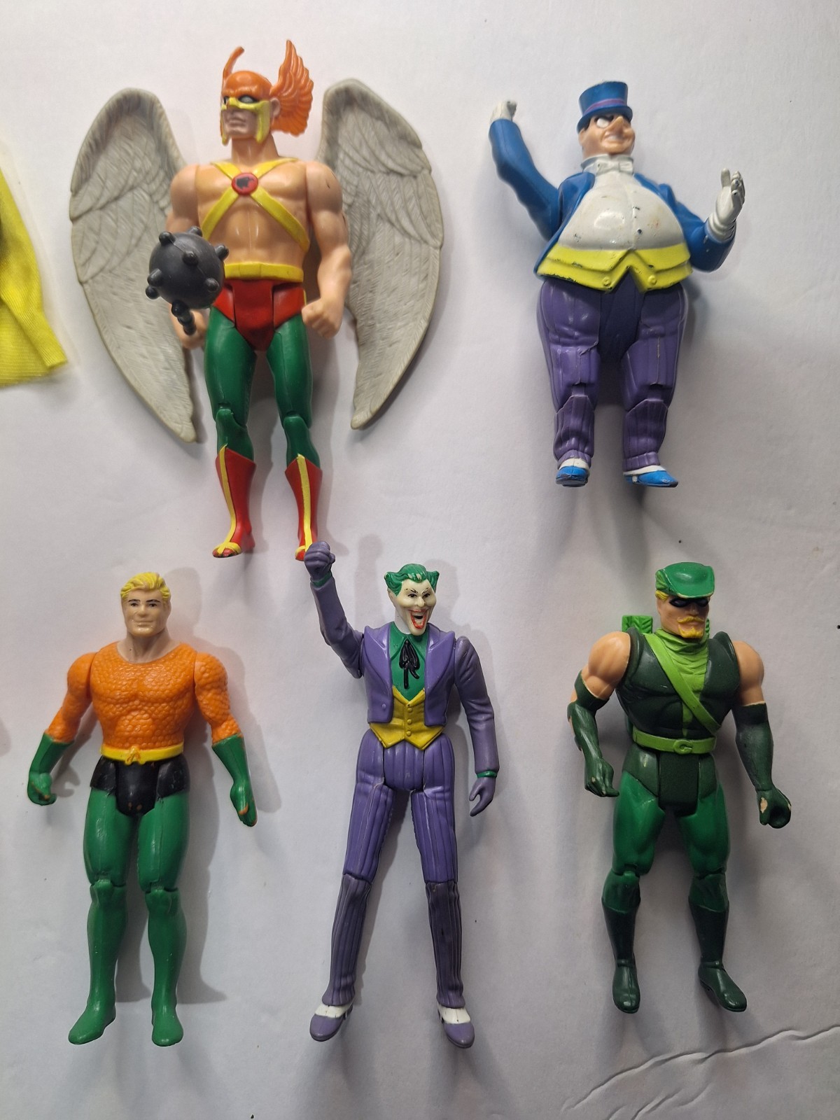 All figures are in tact. Only Hawkman has his weapon, Dr Fate has his cape. All figures are in used condition. Lot Includes Batman, Joker, Red Tornado, Hawkman, Wonder Woman, Dr Fate, Penguin, Aquaman, Green Arrow, Flash, and Firestorm