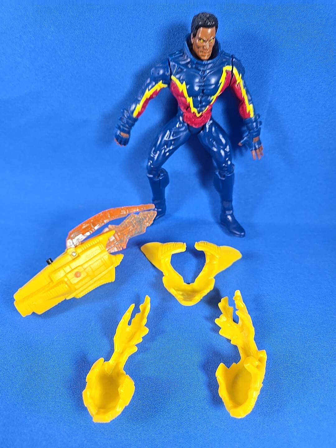 Condition is pre-owned and played with. Please see the photos and message me with any questions. Includes figure, detachable chest & both legs armor, and gun but no collectors display stand. The gun has a broken strap that would be held in his hand and is missing the projectile missile.